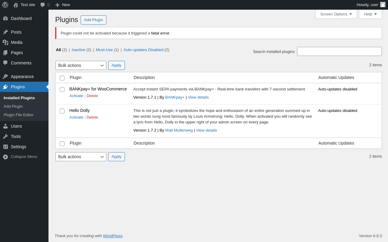 Pages 1 Plugins ‹ Test site — WordPress