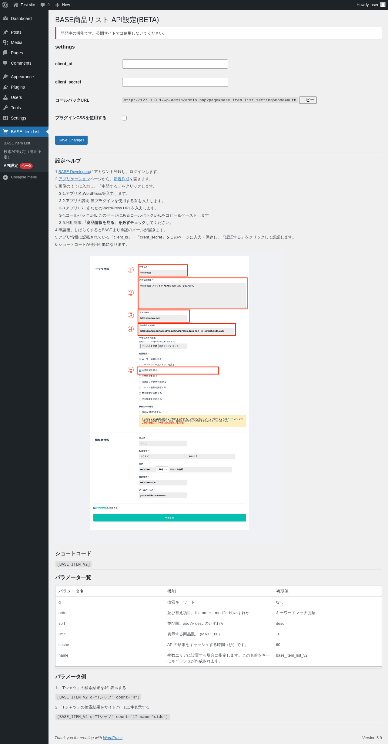 | URL | /wp-admin/admin.php?page=base_item_list_setting |