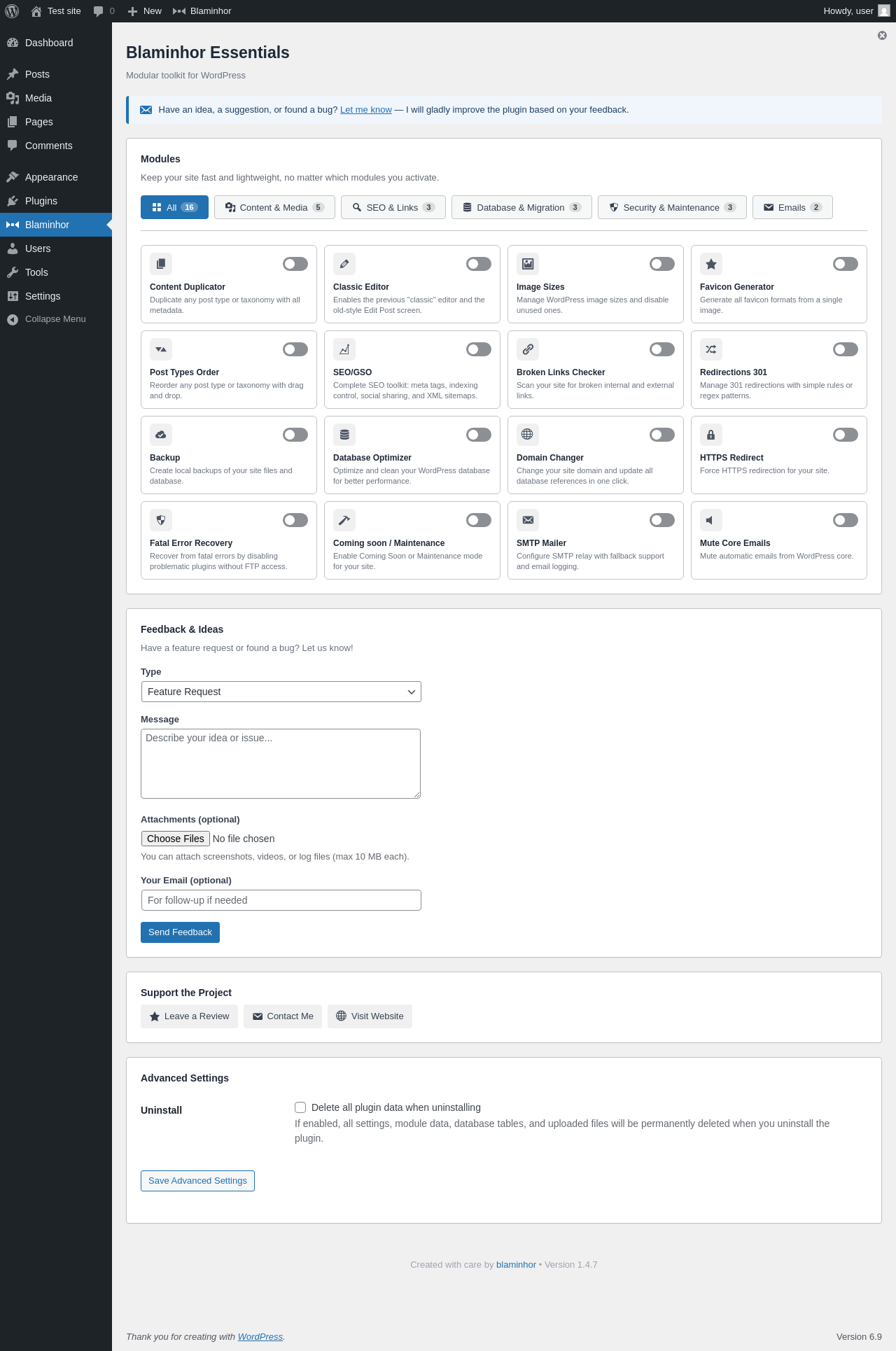 | URL | /wp-admin/admin.php?page=blaminhor-essentials |
