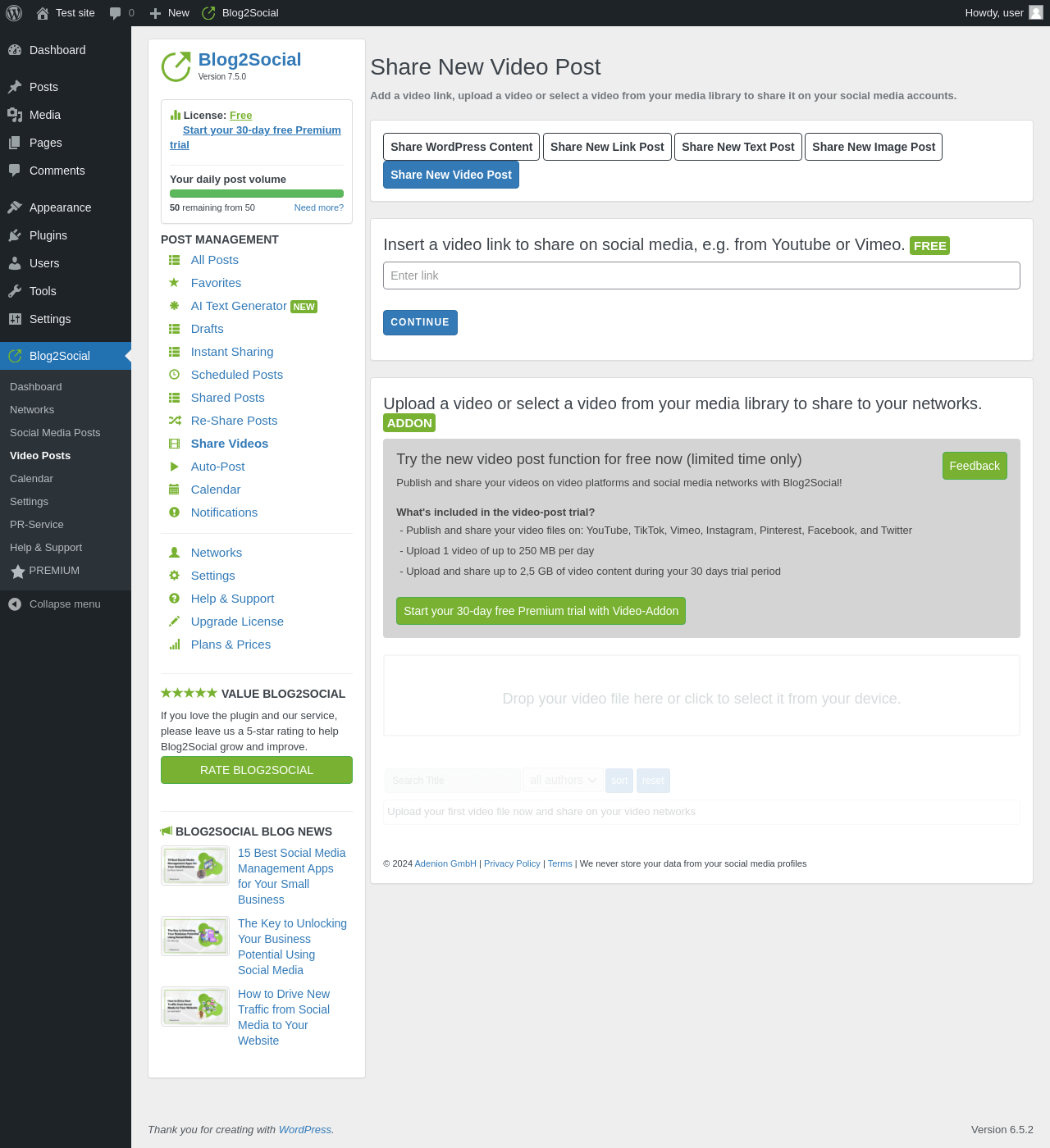 | URL | /wp-admin/admin.php?page=blog2social-video |
