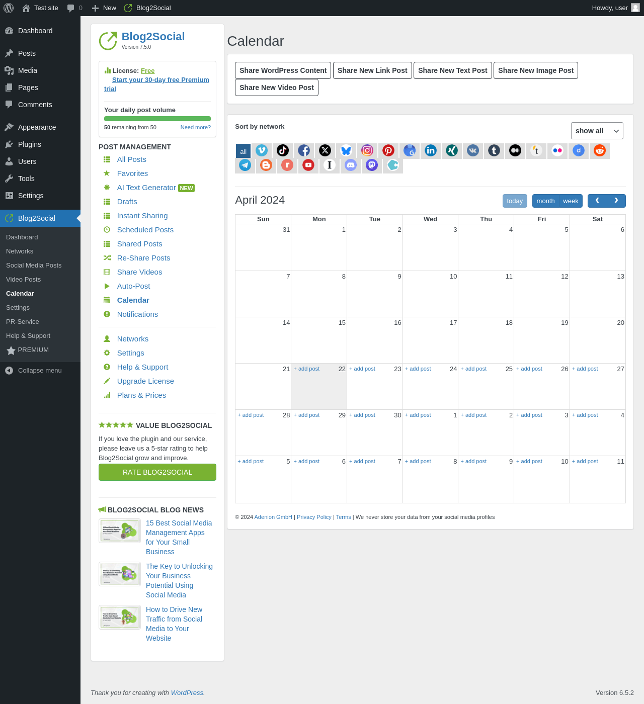 "title": "Blog2Social: Social Media Content Calendar",