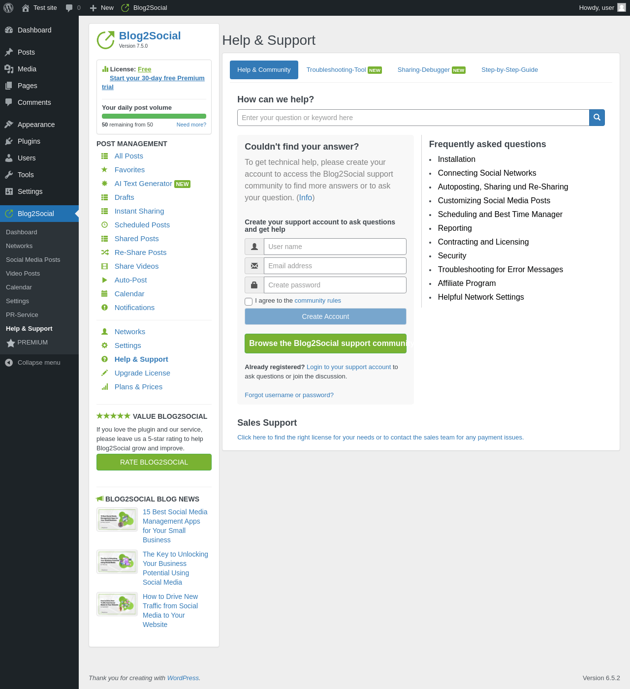 | URL | /wp-admin/admin.php?page=blog2social-support |