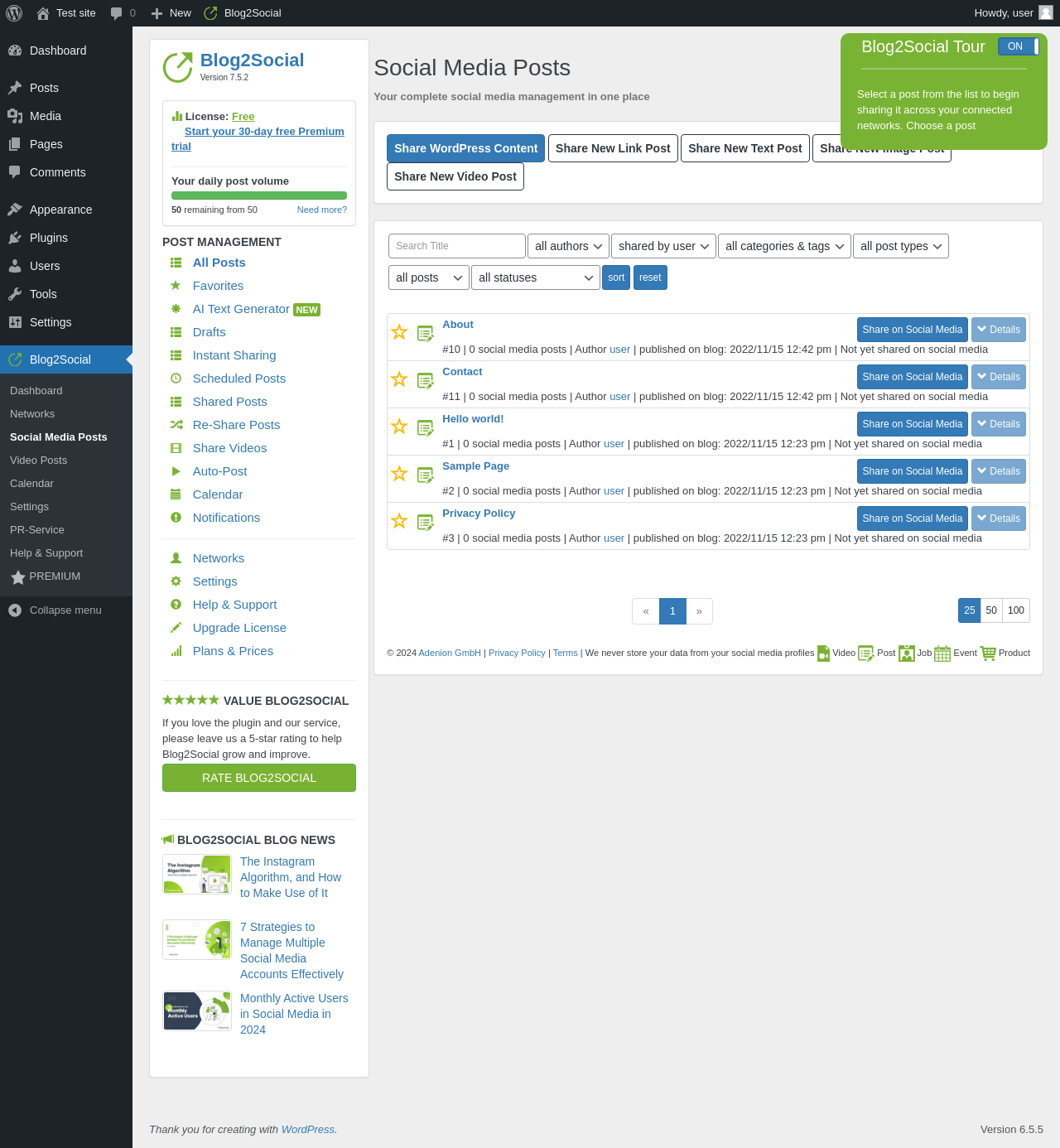 | WordPress.org page | https://wordpress.org/plugins/blog2social/ |