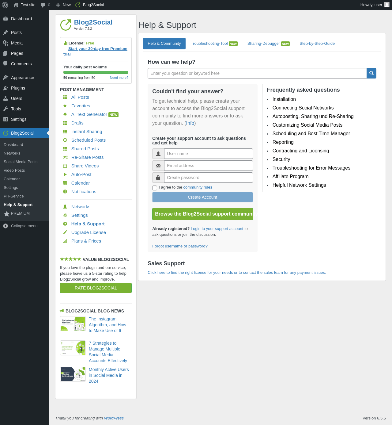 | URL | /wp-admin/admin.php?page=blog2social-support |