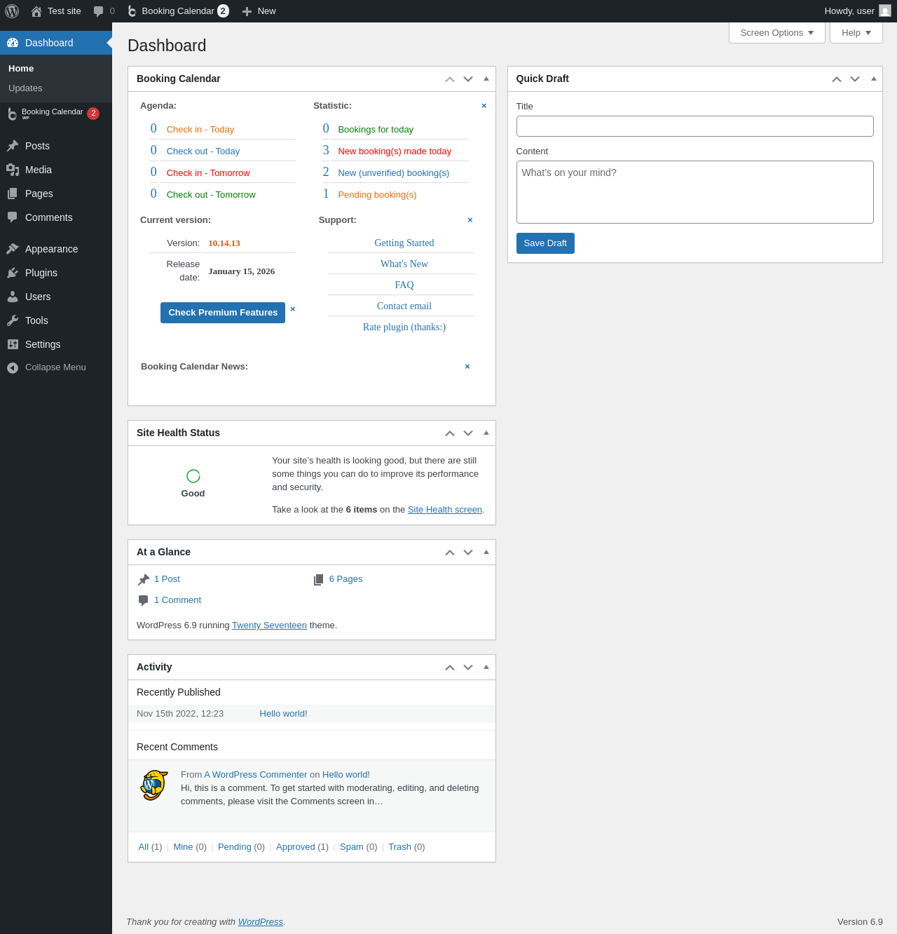 Does Booking Calendar work with WordPress 6.9 and PHP 8.1.12? A smoke test was performed on .