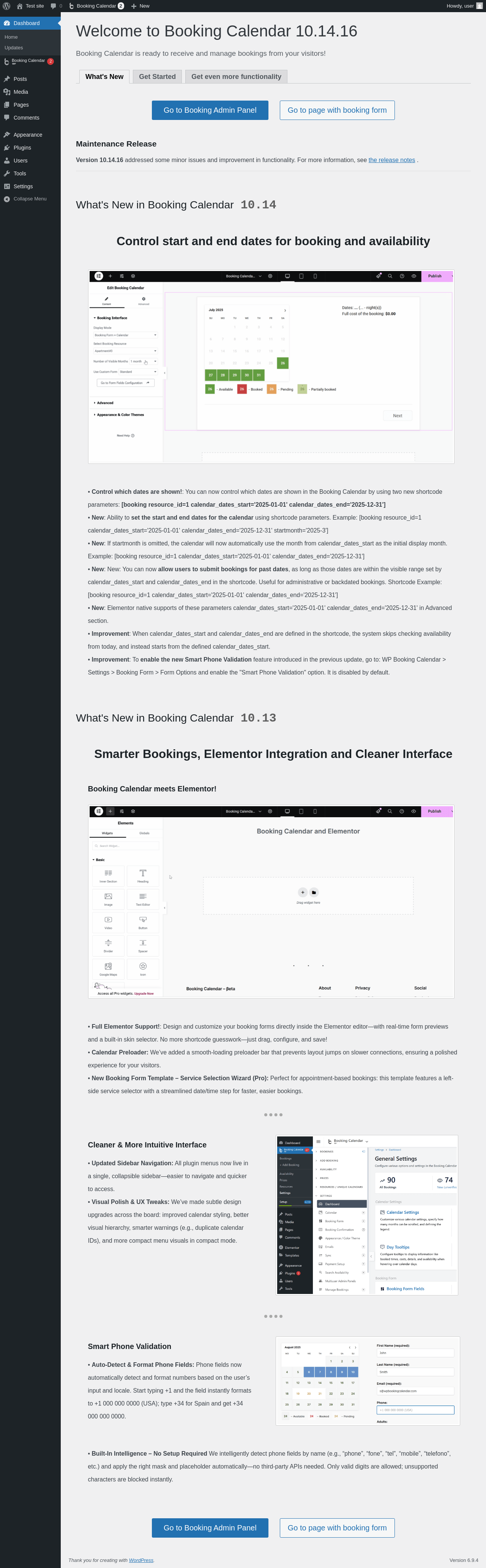 Does Booking Calendar work with WordPress 6.9.4 and PHP 8.1.12? A smoke test was performed on .