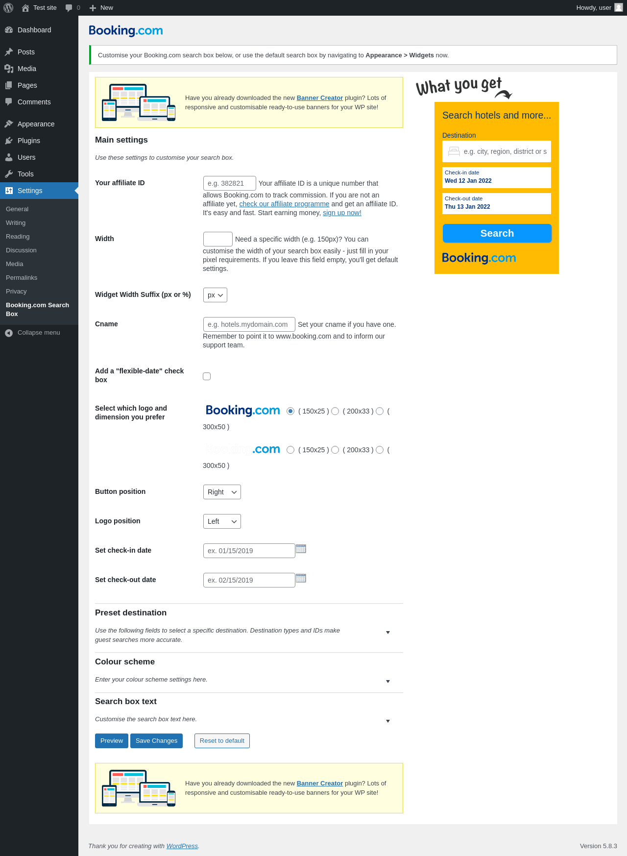 Does "Booking.com Official Search Box" work with WordPress 5.8.3 and PHP 7.4.8? A smoke test was performed on .