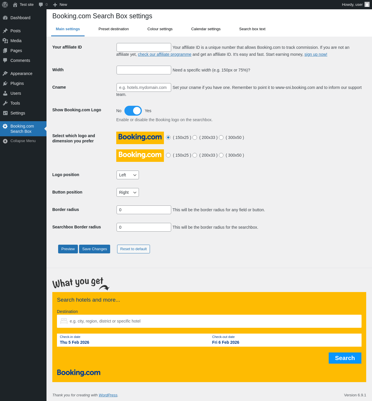 Does "Booking.com Official Search Box" work with WordPress 6.9.1 and PHP 8.1.12? A smoke test was performed on .
