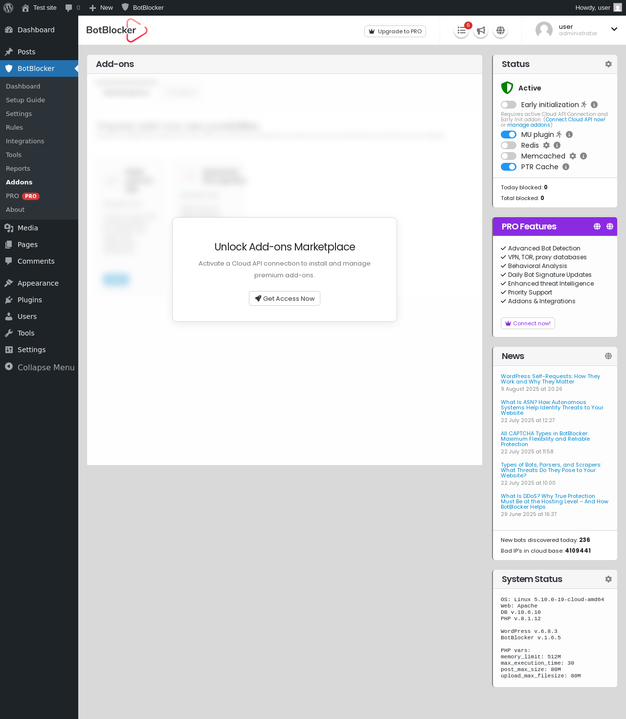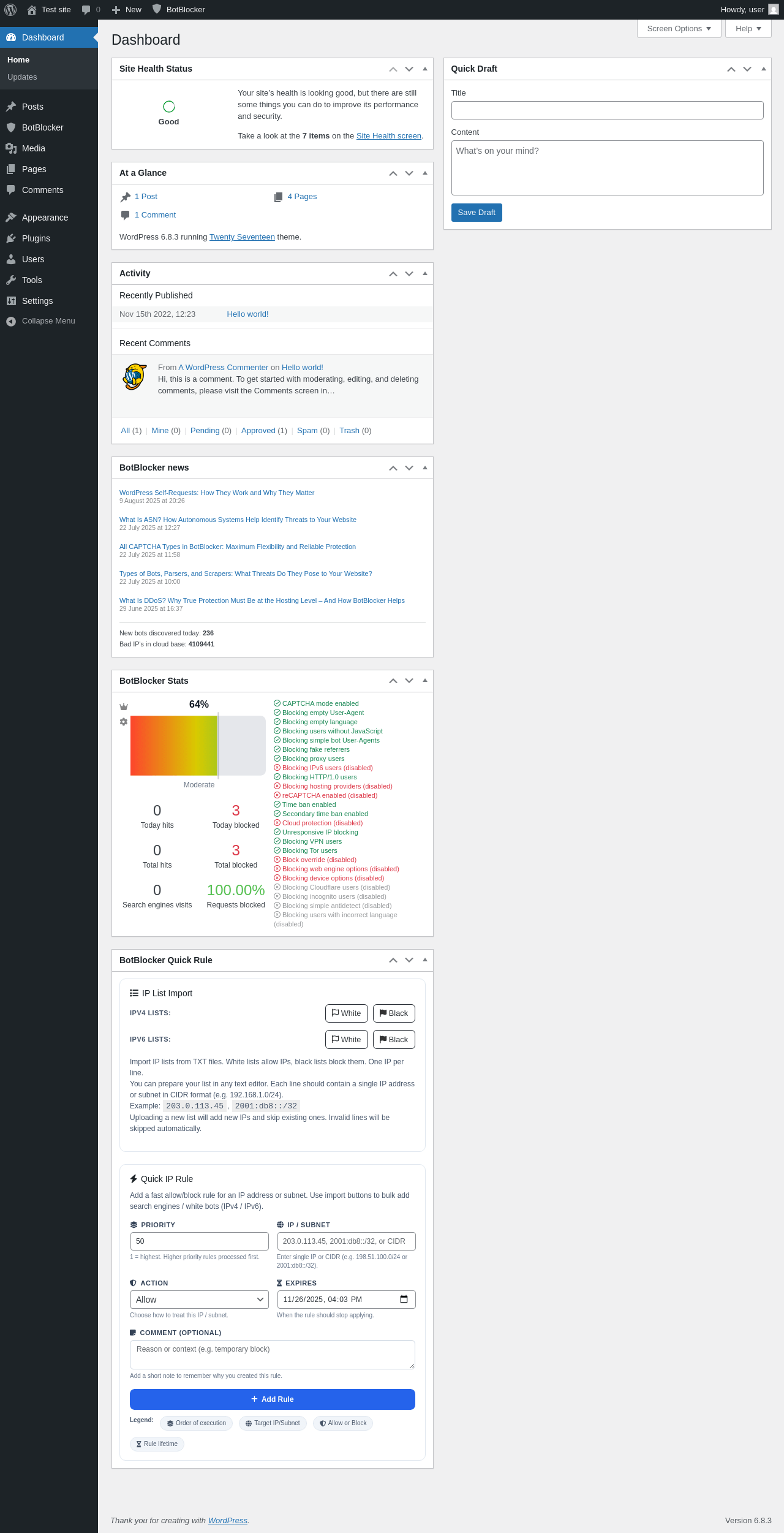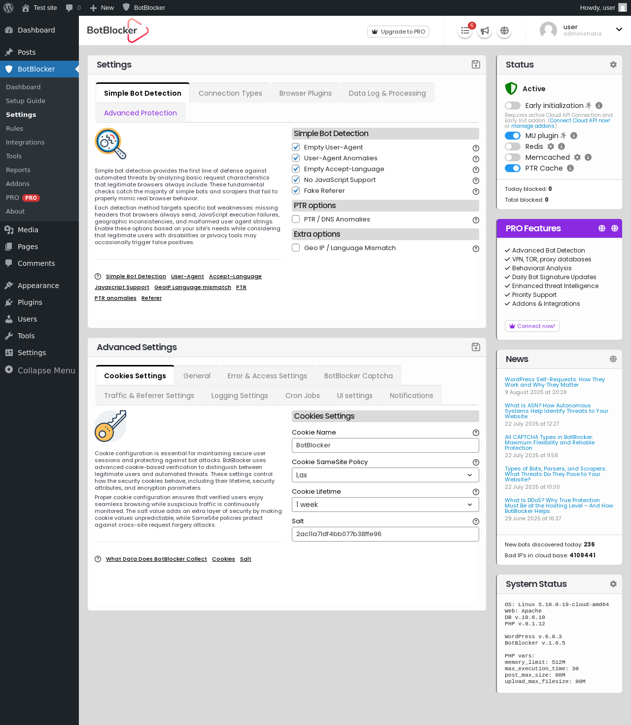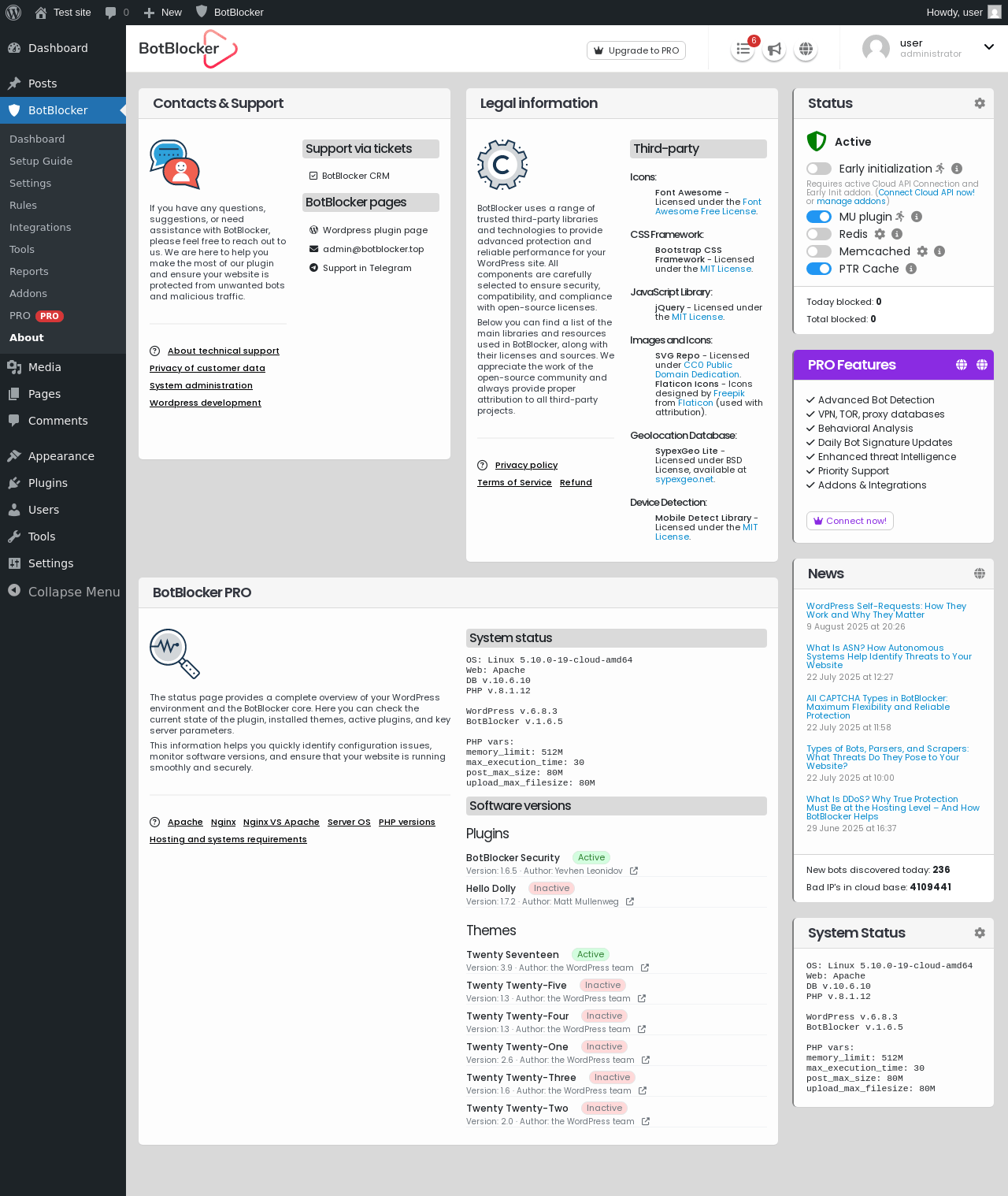 Does BotBlocker Security work with WordPress 6.8.3 and PHP 8.1.12? A smoke test was performed on .