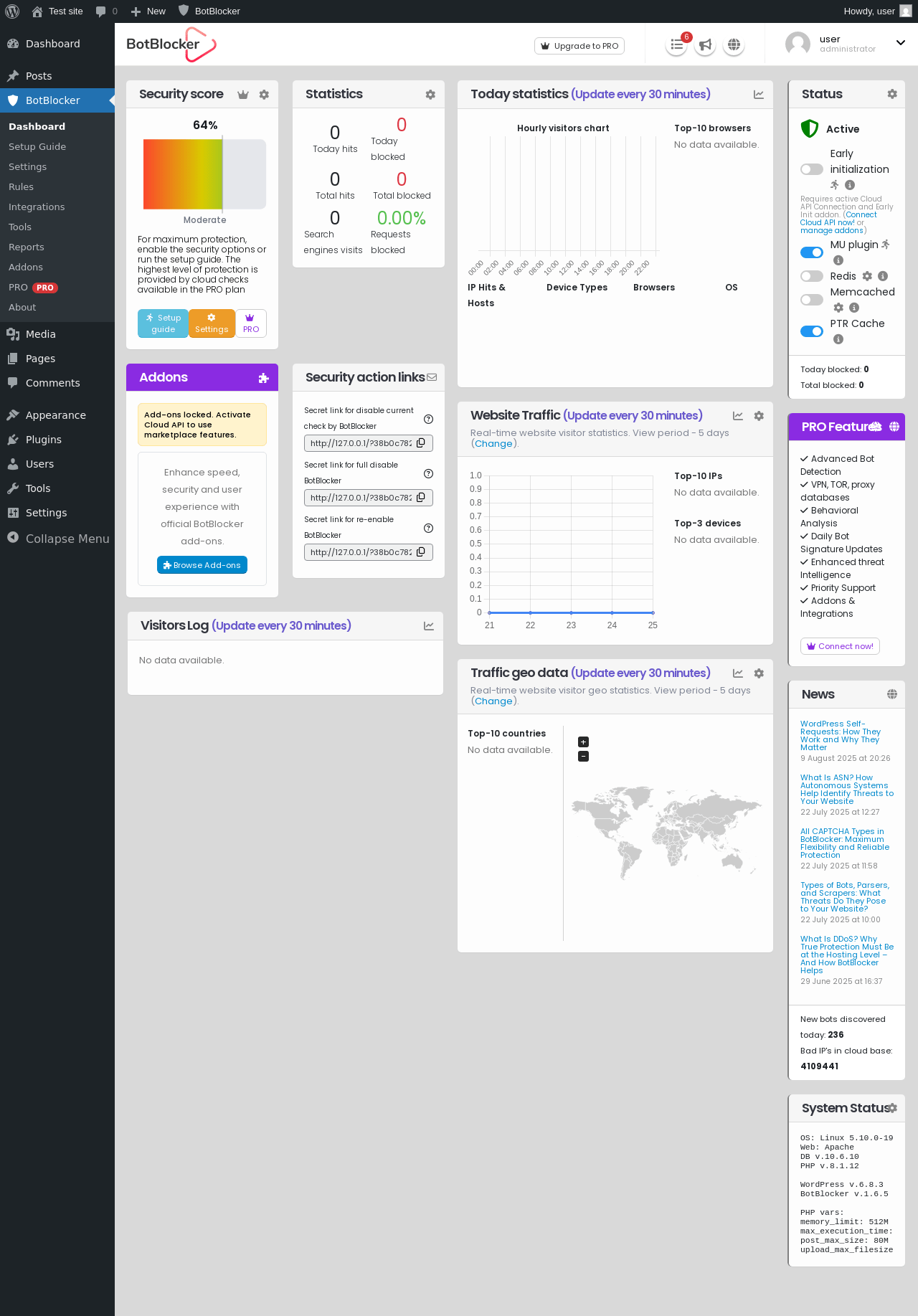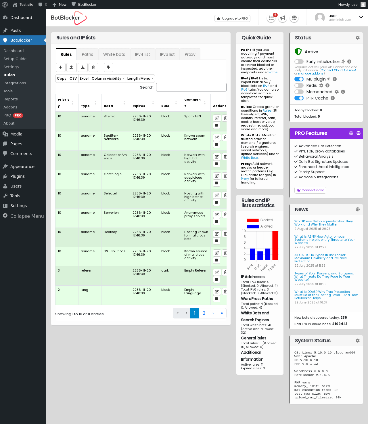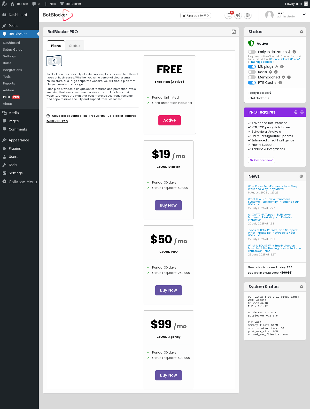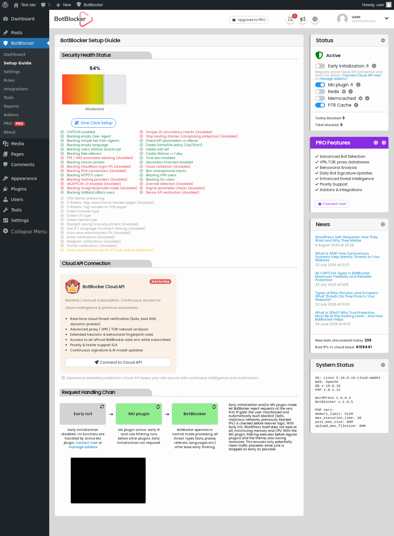 Does BotBlocker Security work with WordPress 6.8.3 and PHP 8.1.12? A smoke test was performed on .