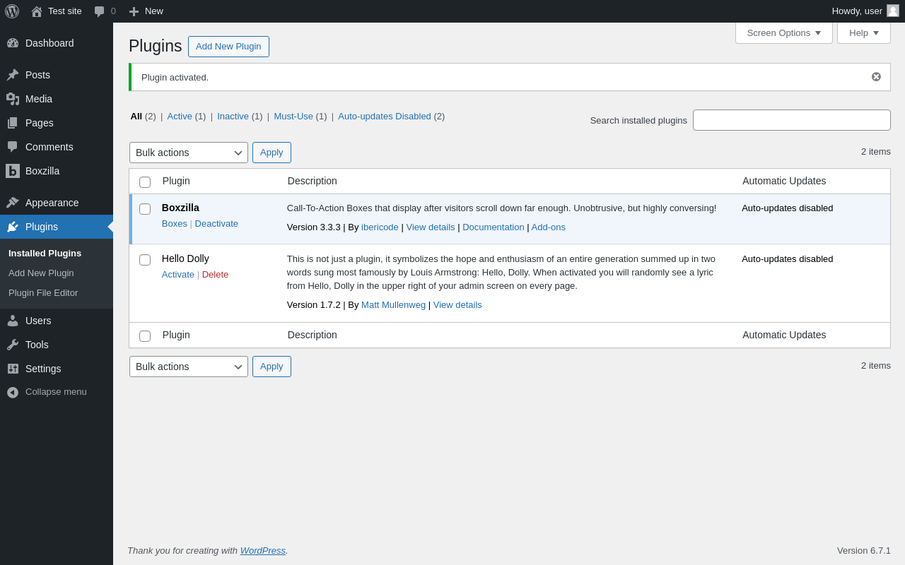 Does Boxzilla work with WordPress 6.7.1 and PHP 8.1.12? A smoke test was performed on .