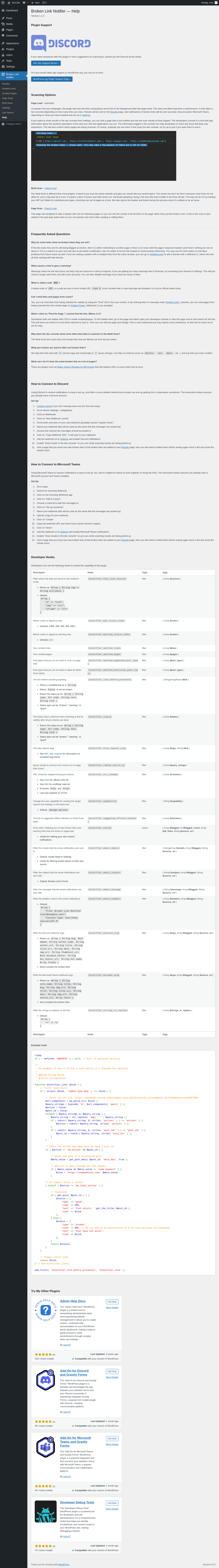 | URL | /wp-admin/admin.php?page=broken-link-notifier&tab=help |