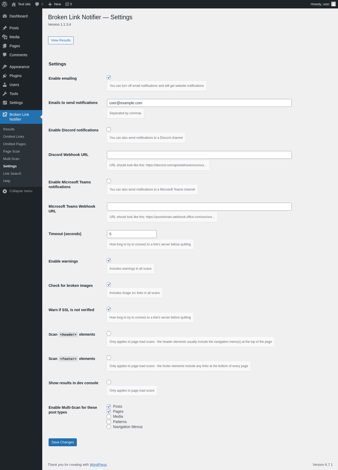 | URL | /wp-admin/admin.php?page=broken-link-notifier&tab=settings |