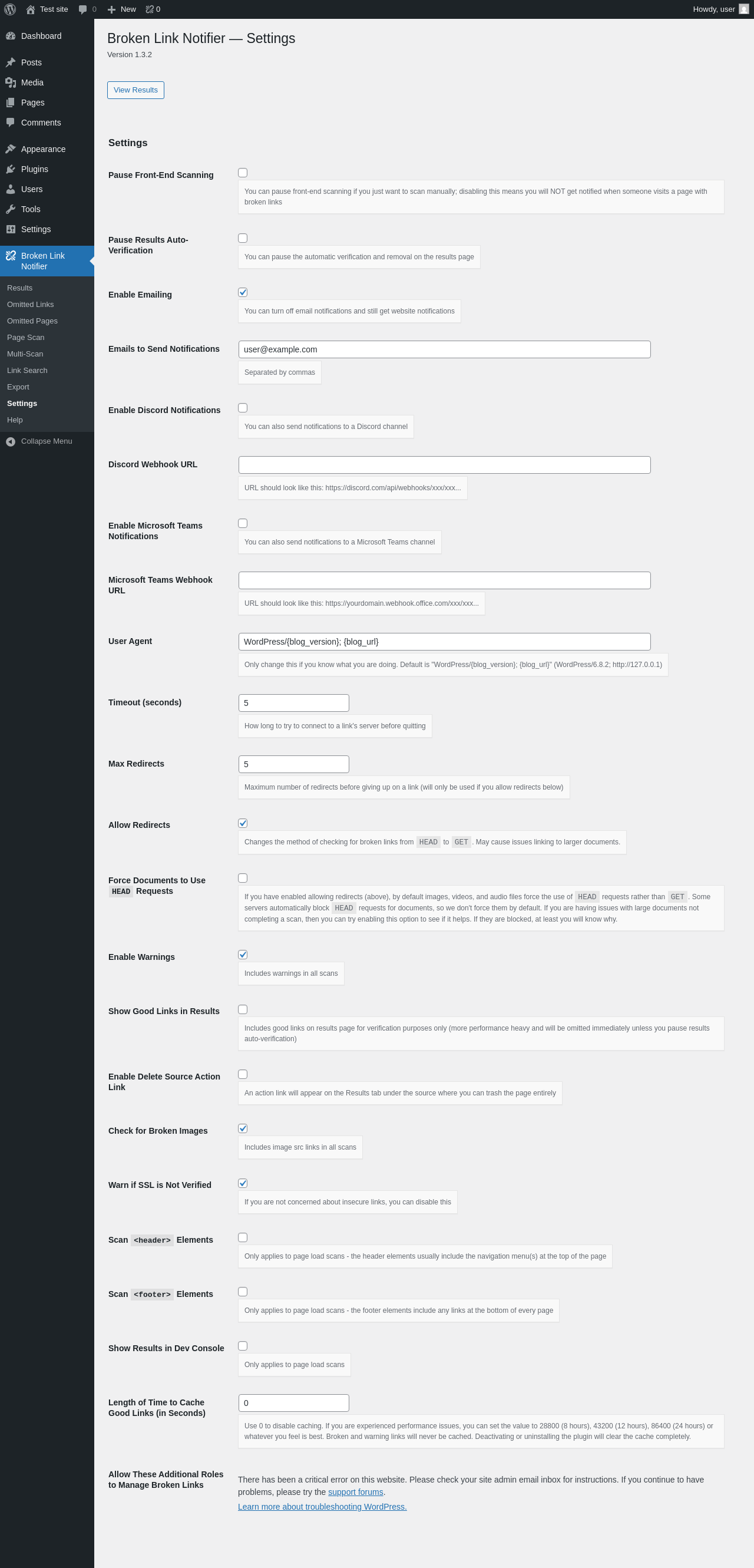 | URL | /wp-admin/admin.php?page=broken-link-notifier&tab=settings |