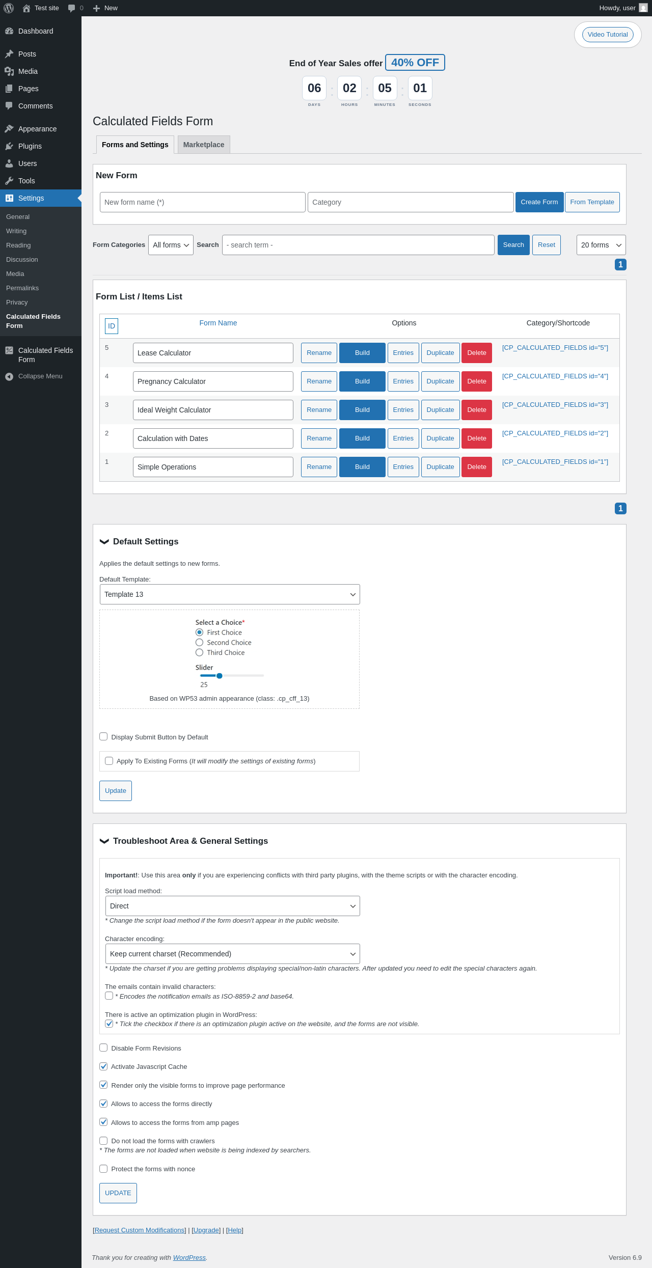 Calculated Fields Form ‹ Test site — WordPress