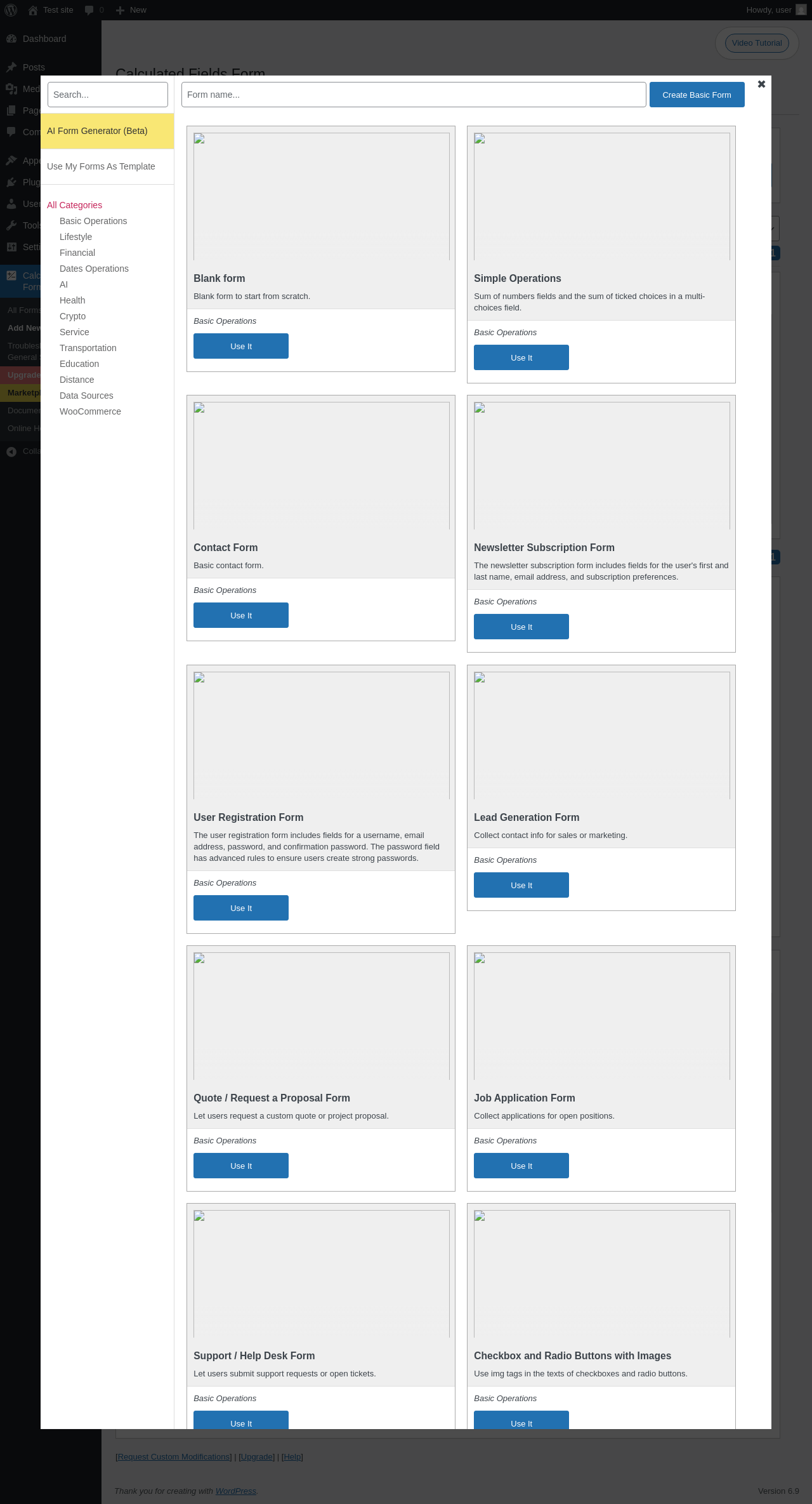 Calculated Fields Form ‹ Test site — WordPress