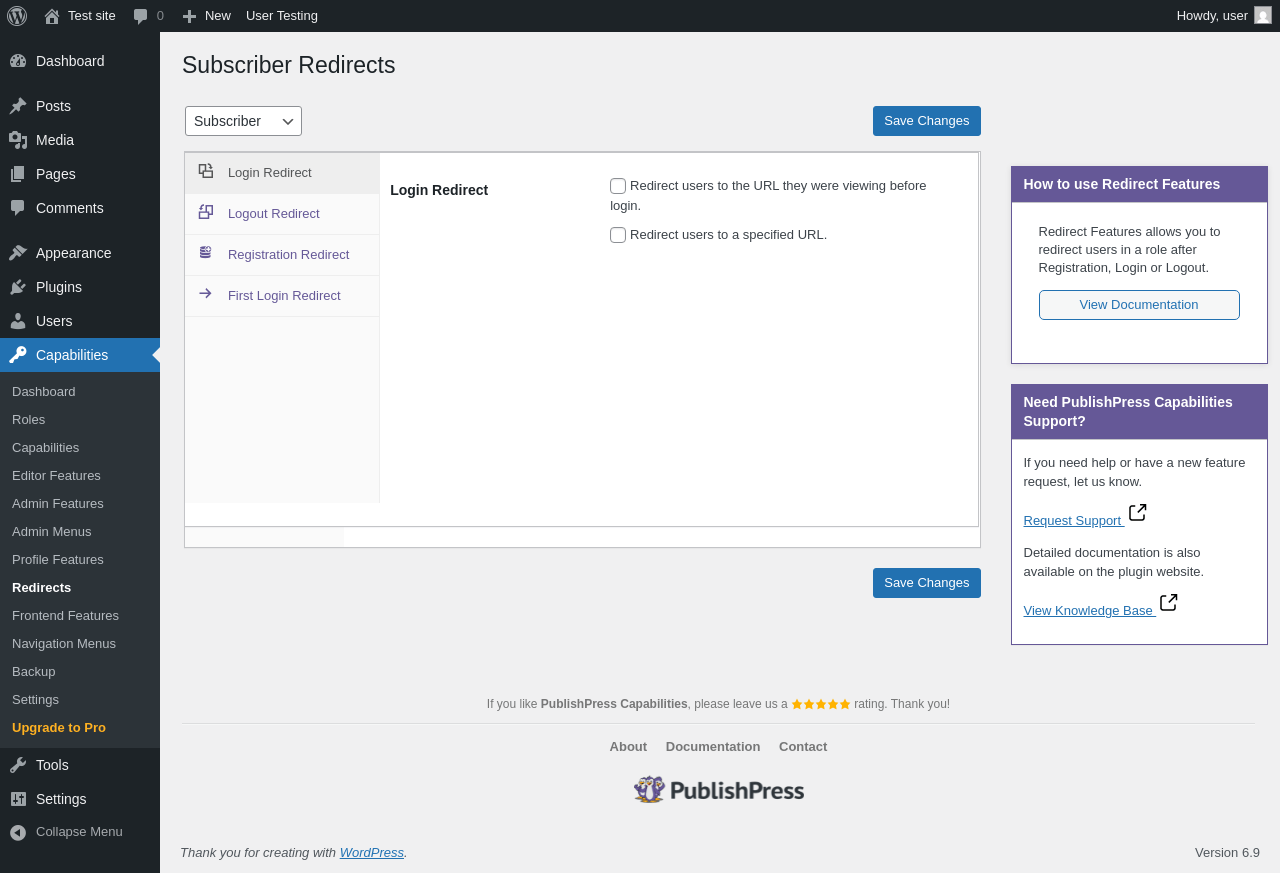 | URL | /wp-admin/admin.php?page=pp-capabilities-redirects |
