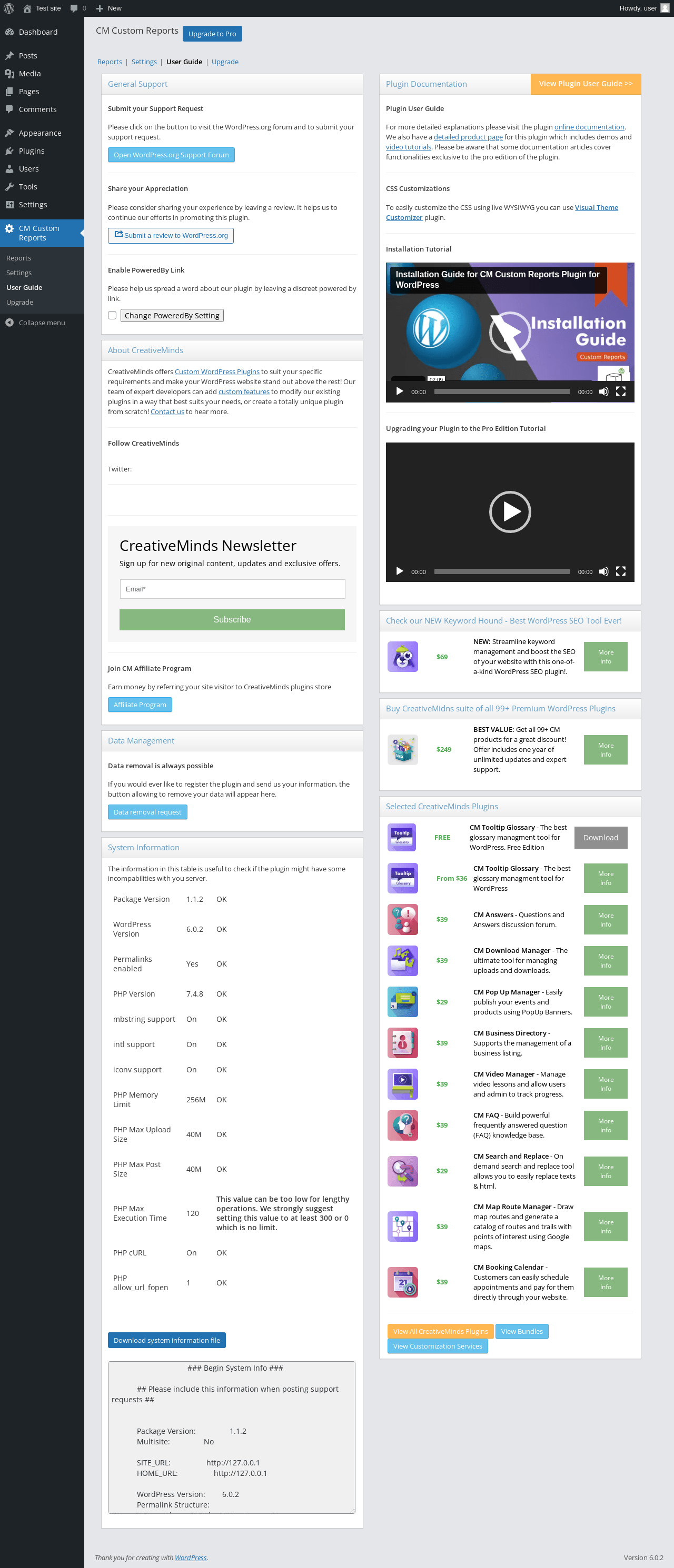 | URL | /wp-admin/admin.php?page=cm-custom-reports |