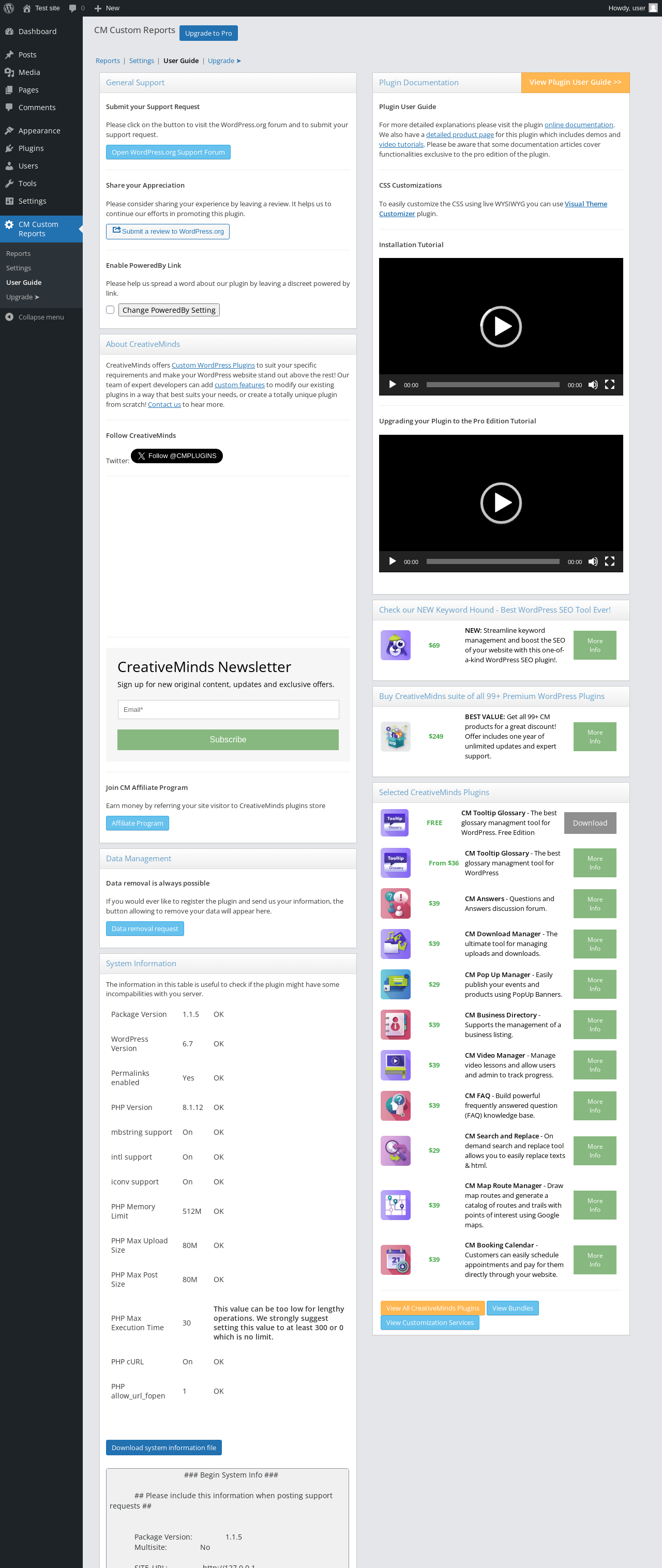 Does CM Custom Reports work with WordPress 6.7 and PHP 8.1.12? A smoke test was performed on .