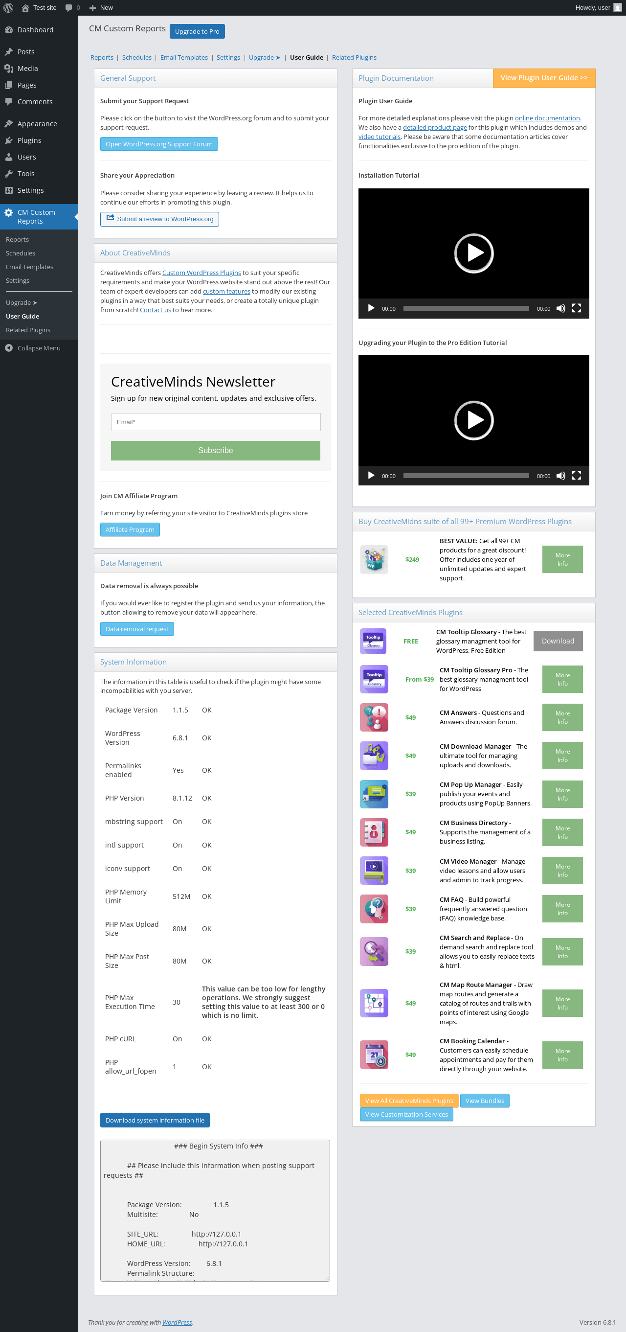 Does CM Custom Reports work with WordPress 6.8.1 and PHP 8.1.12? A smoke test was performed on .