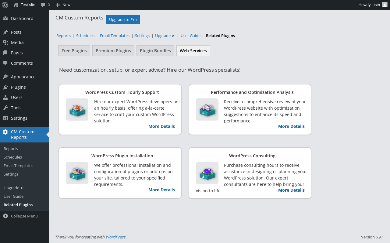 | WordPress.org page | https://wordpress.org/plugins/cm-custom-reports/ |