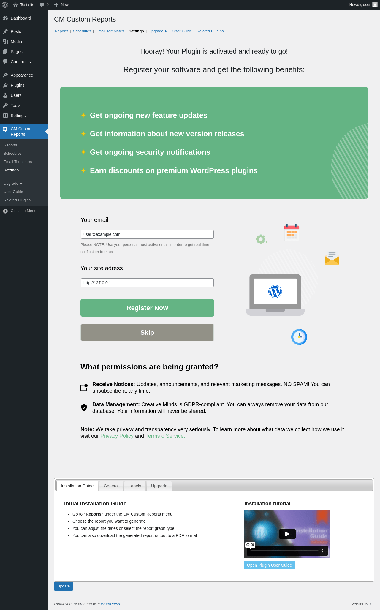 | URL | /wp-admin/admin.php?page=cm-custom-reports-settings |
