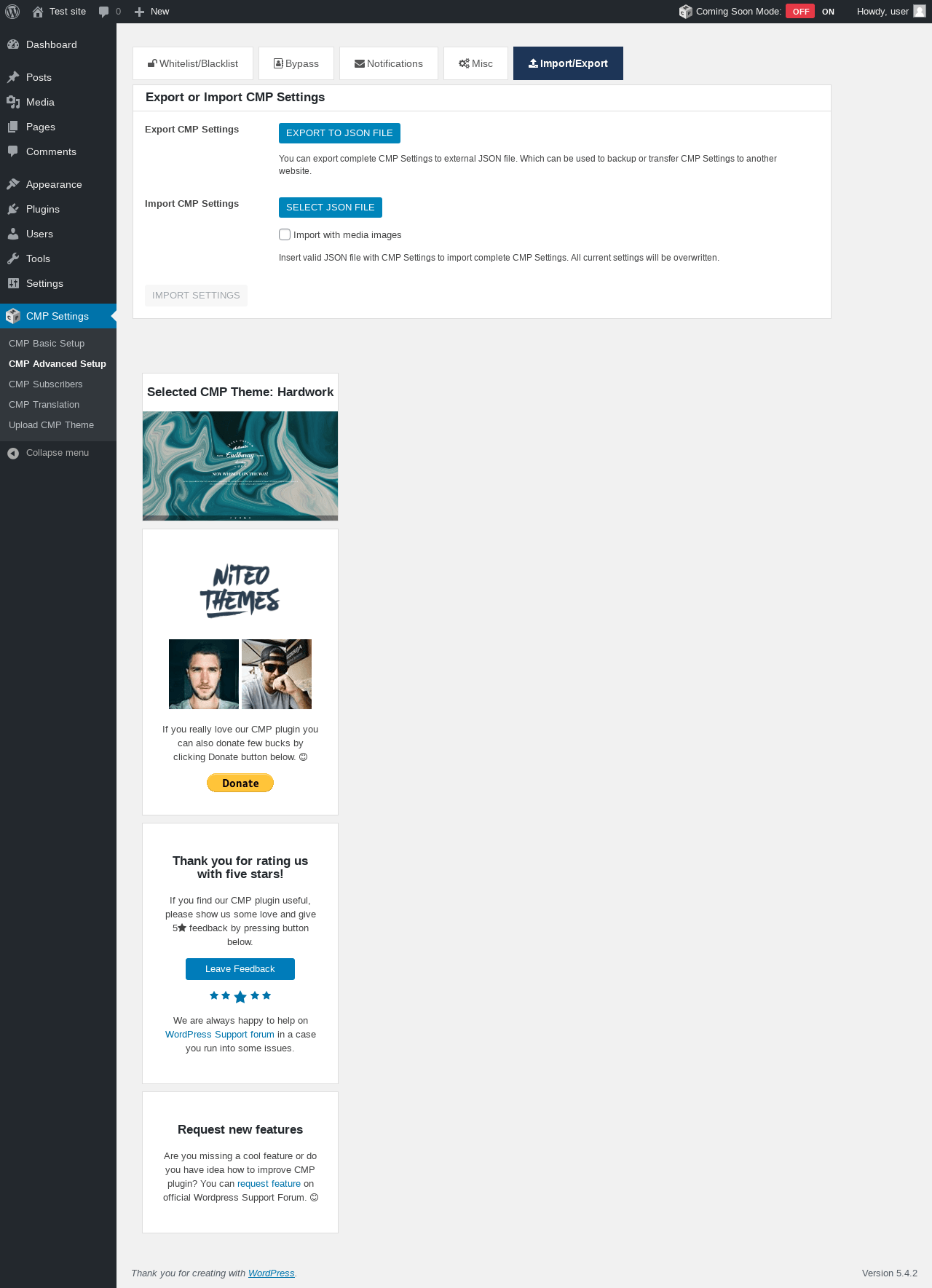 | URL | /wp-admin/admin.php?page=cmp-advanced |