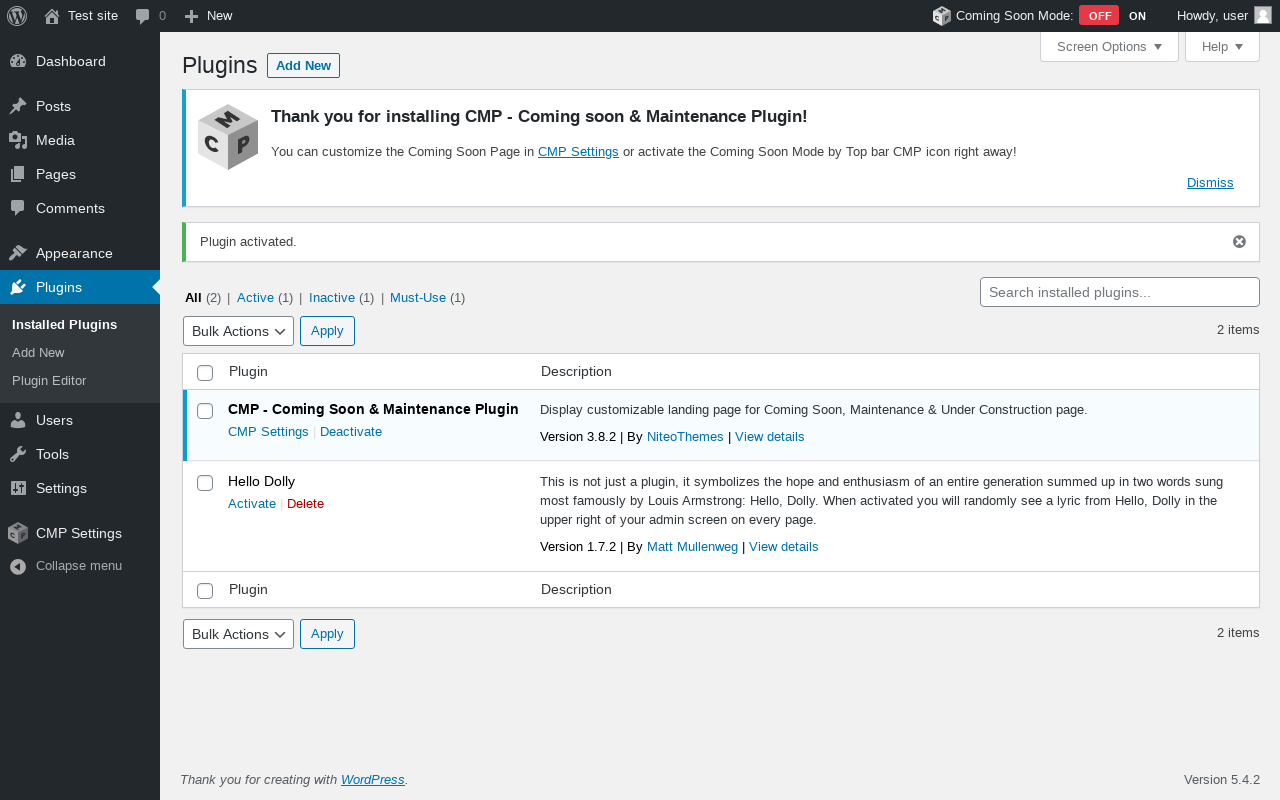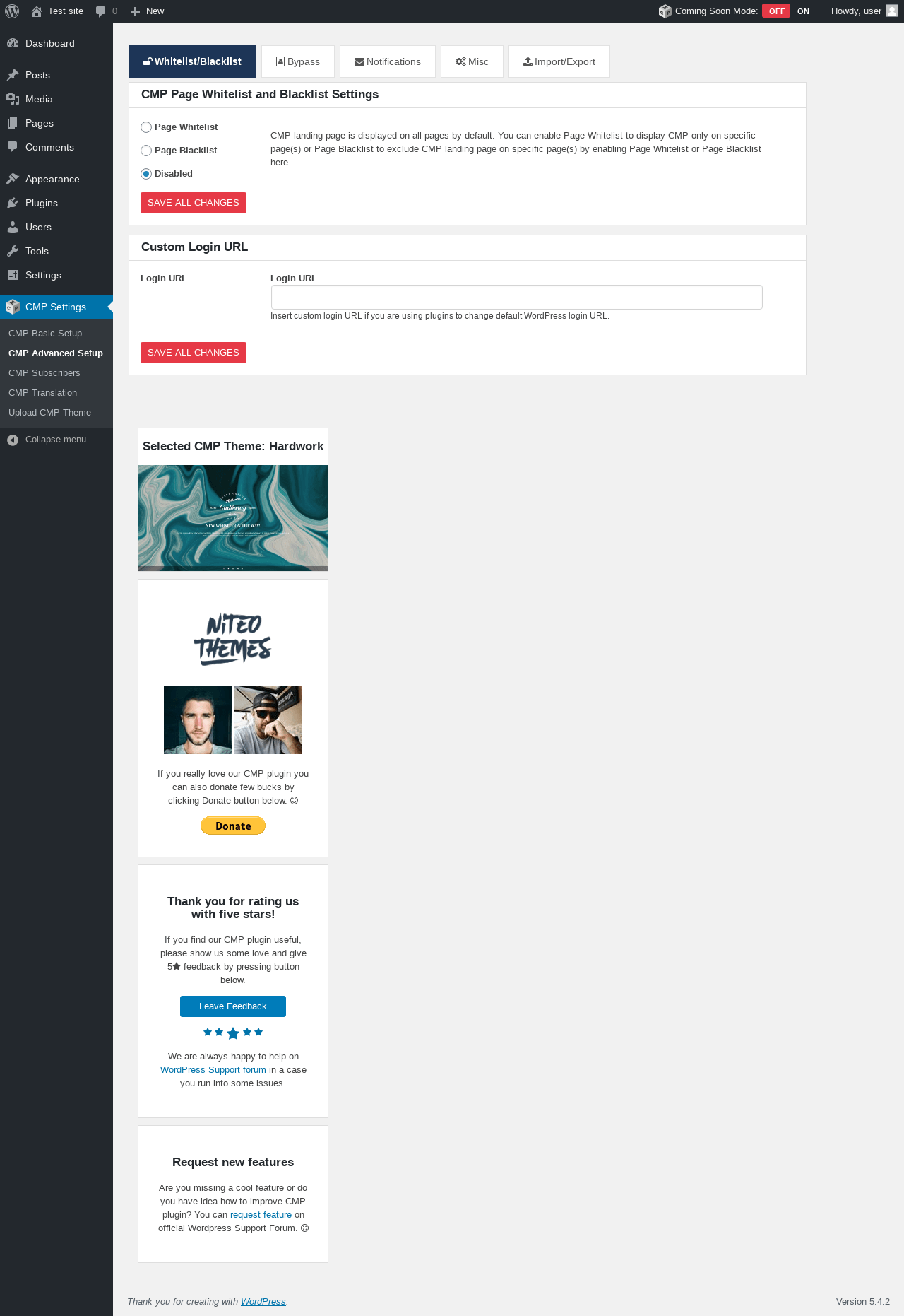 Does "CMP - Coming Soon & Maintenance Plugin" work with WordPress 5.4.2 and PHP 7.2.16? A smoke test was performed on .