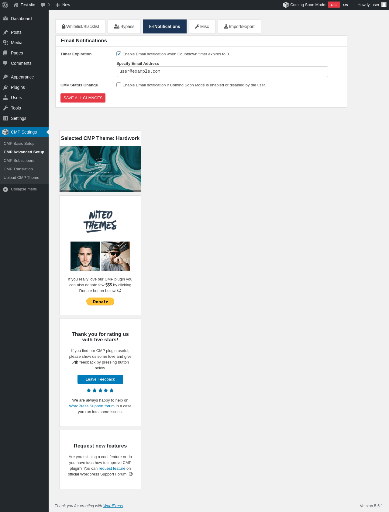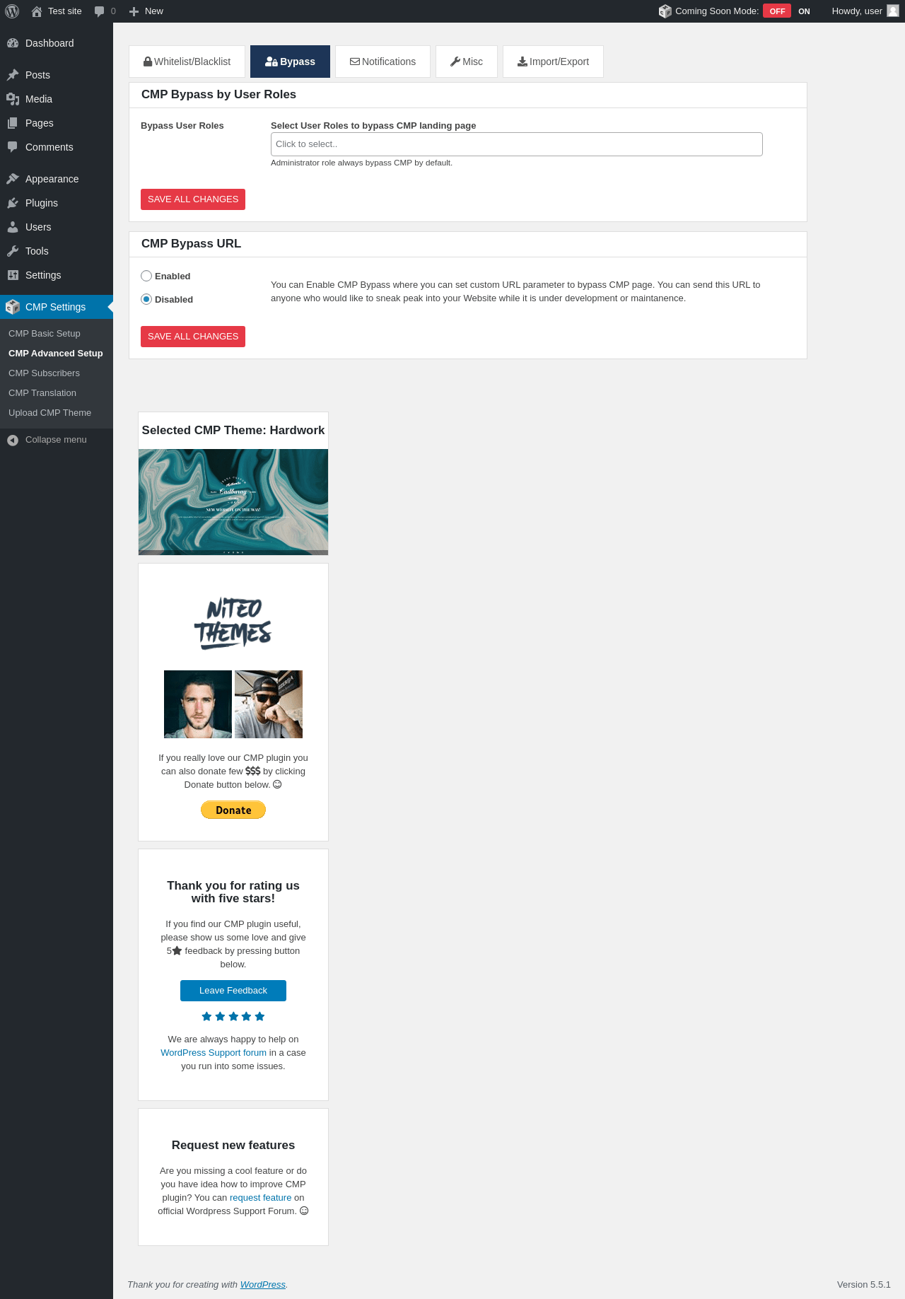 Does "CMP - Coming Soon & Maintenance Plugin" work with WordPress 5.5.1 and PHP 7.4.8? A smoke test was performed on .