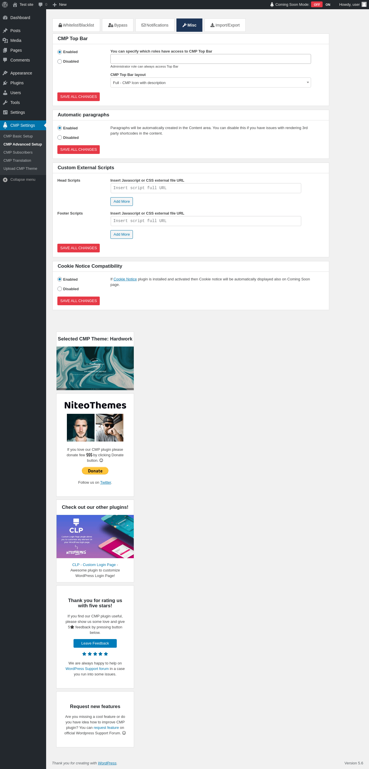 | URL | /wp-admin/admin.php?page=cmp-advanced |