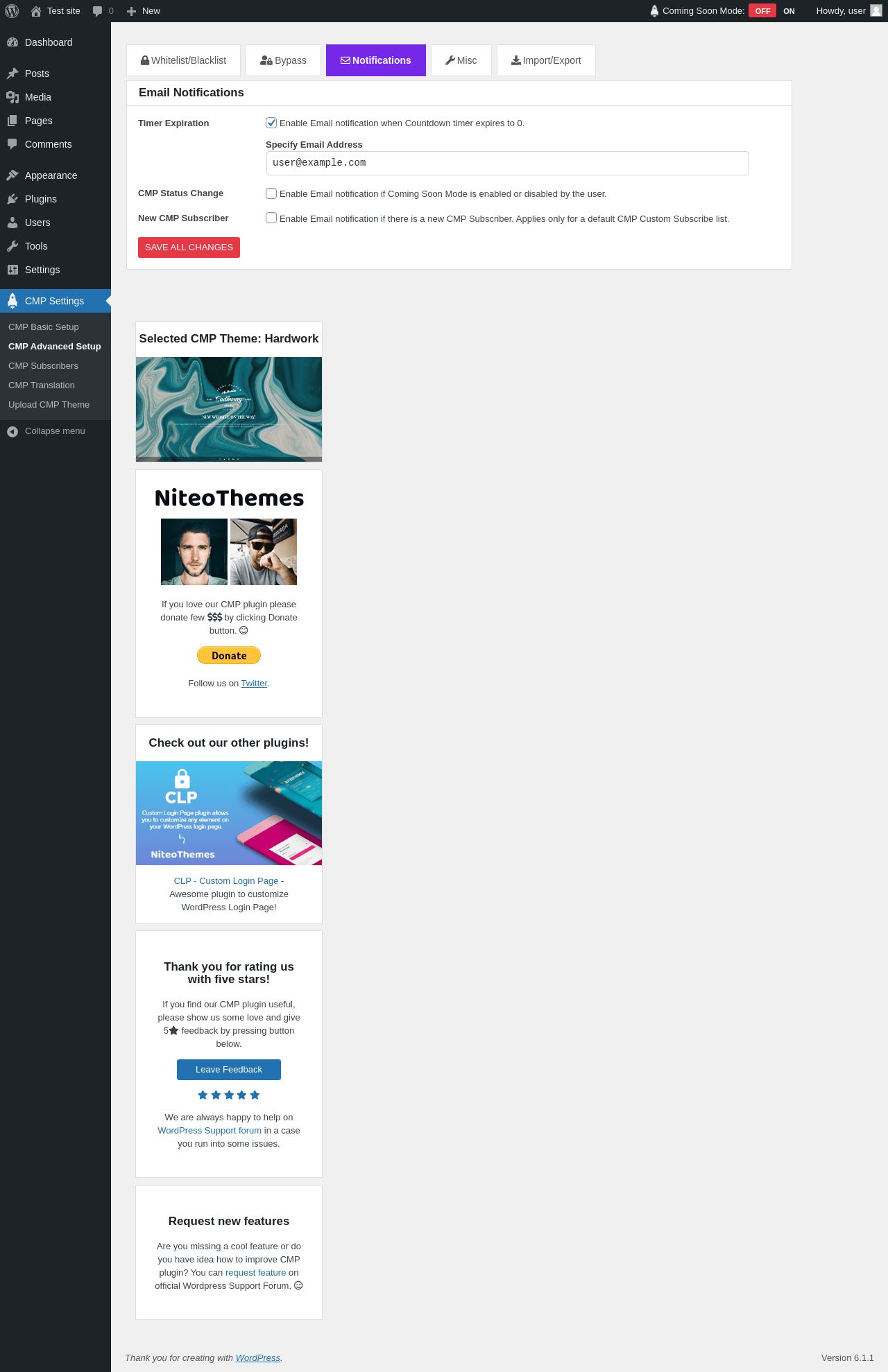 Does "CMP - Coming Soon & Maintenance Plugin" work with WordPress 6.1.1 and PHP 7.4.8? A smoke test was performed on .
