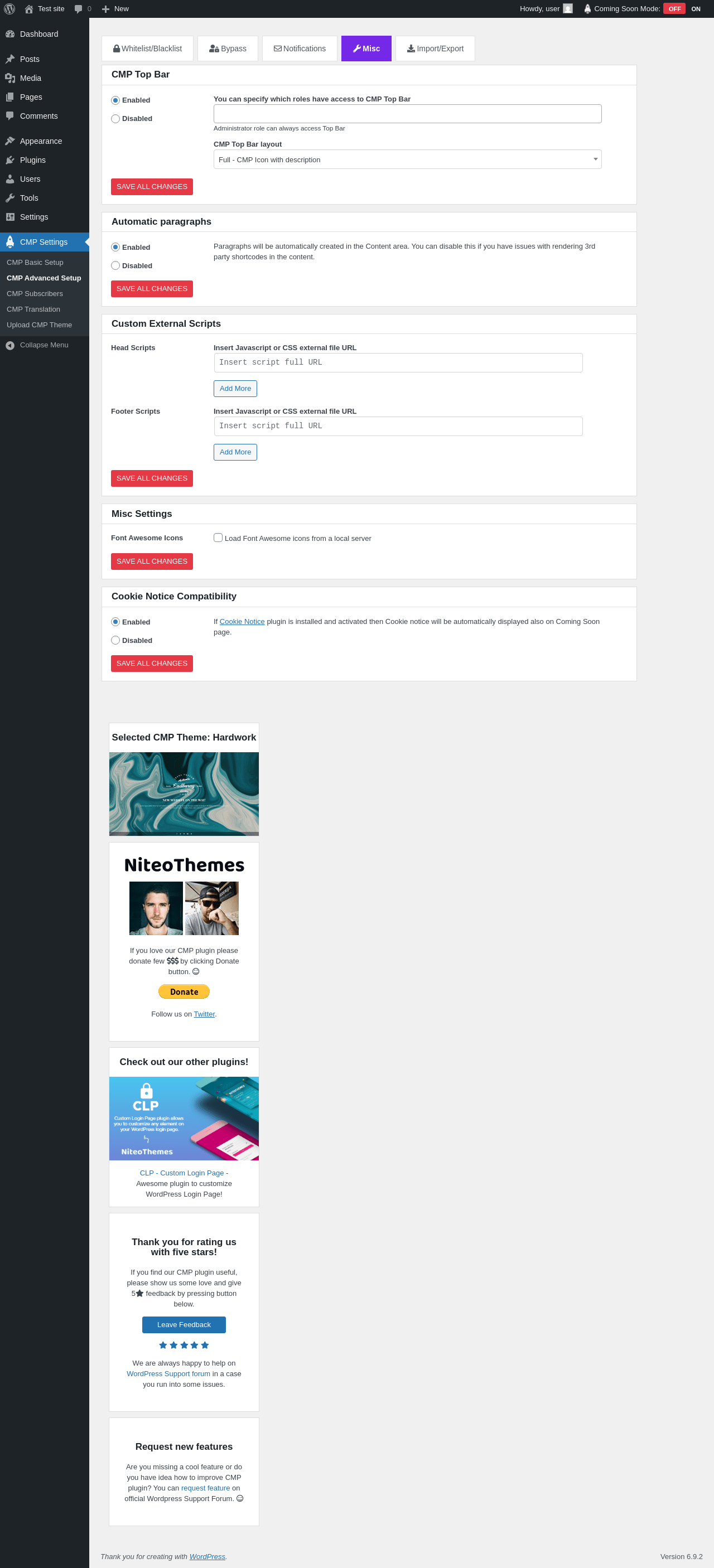 | URL | /wp-admin/admin.php?page=cmp-advanced |