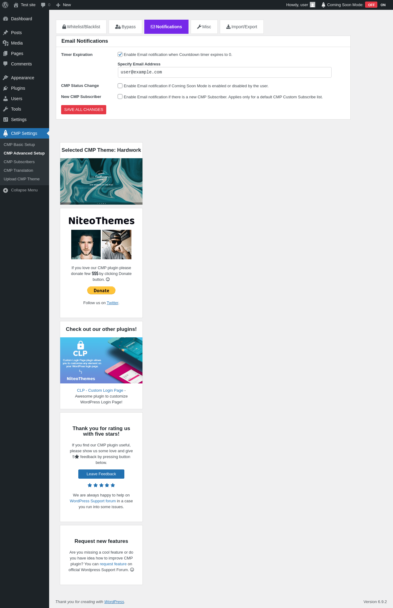 Does "CMP - Coming Soon & Maintenance Plugin" work with WordPress 6.9.2 and PHP 8.1.12? A smoke test was performed on .