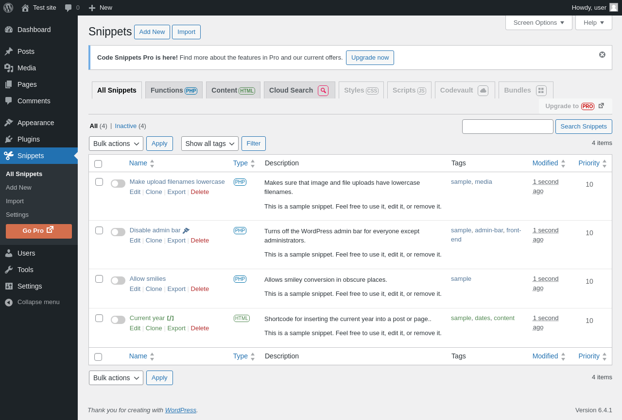 Does Code Snippets work with WordPress 6.4.1 and PHP 8.1.12? A smoke test was performed on .