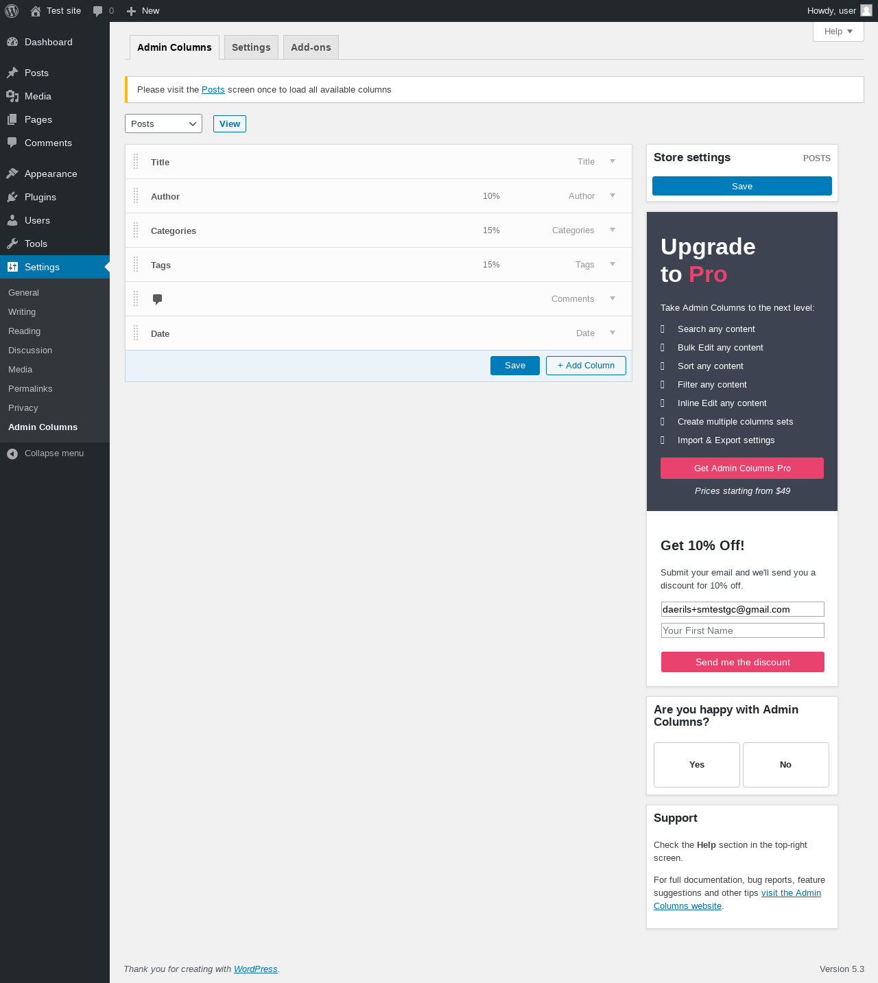 Does Admin Columns work with WordPress 5.3 and PHP 7.2.16? A smoke test was performed on .