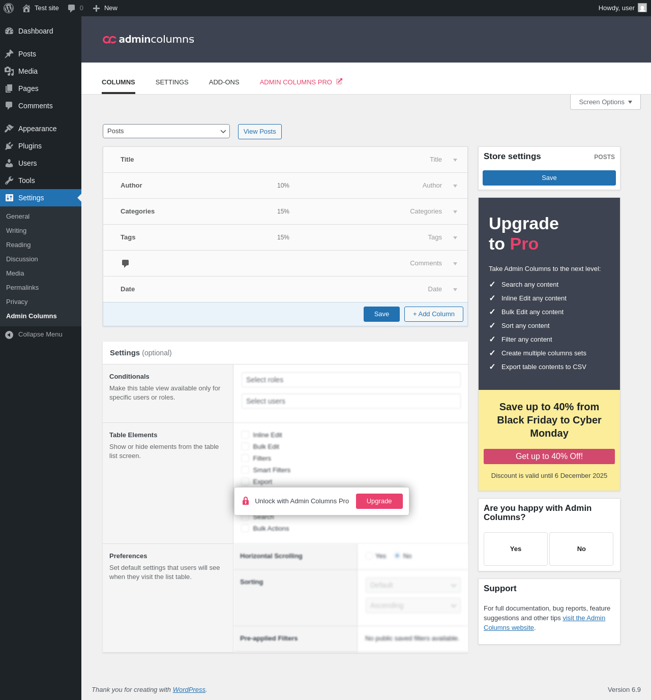 Does Admin Columns work with WordPress 6.9 and PHP 8.1.12? A smoke test was performed on .