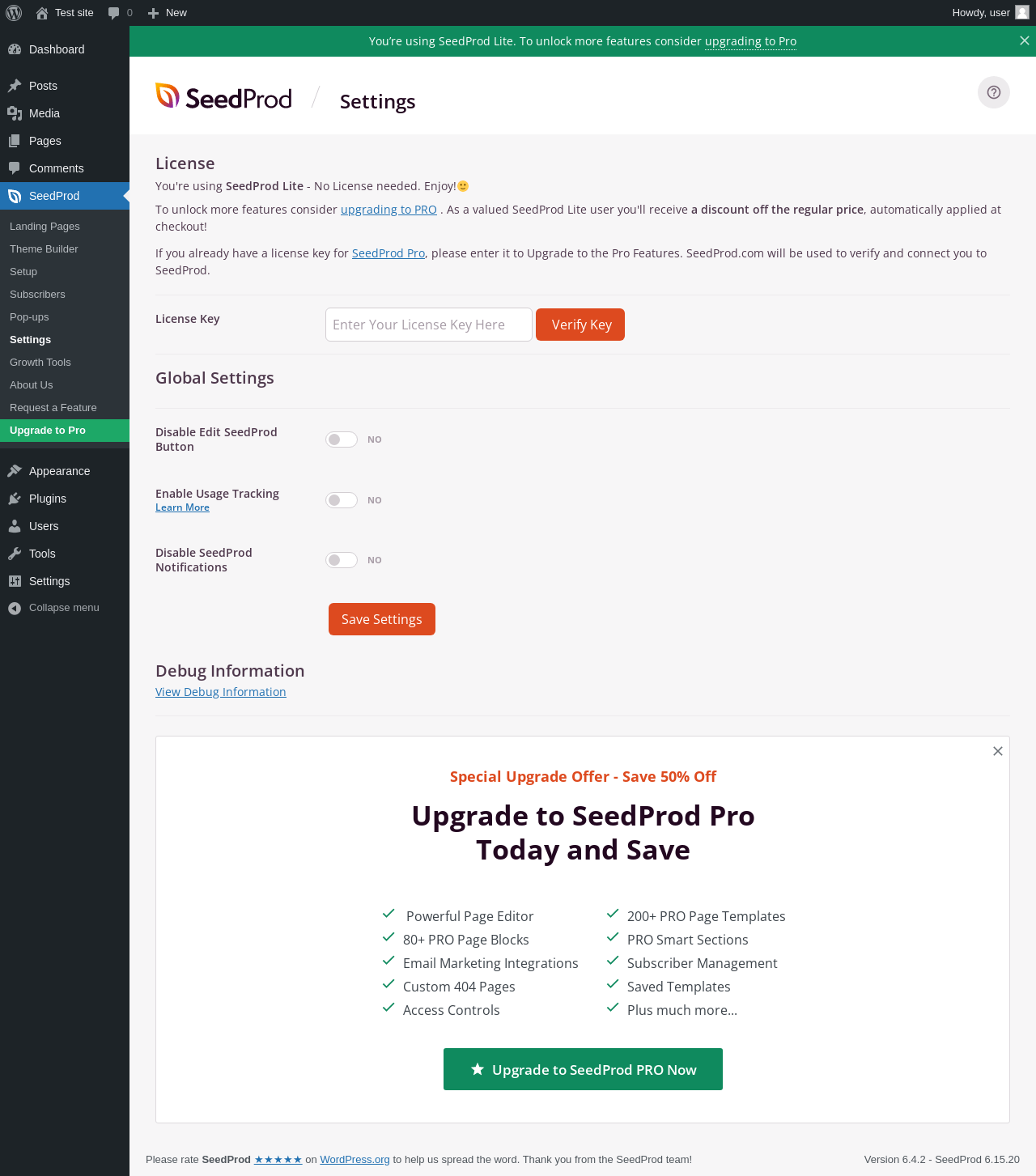 | URL | /wp-admin/admin.php?page=seedprod_lite#/settings |