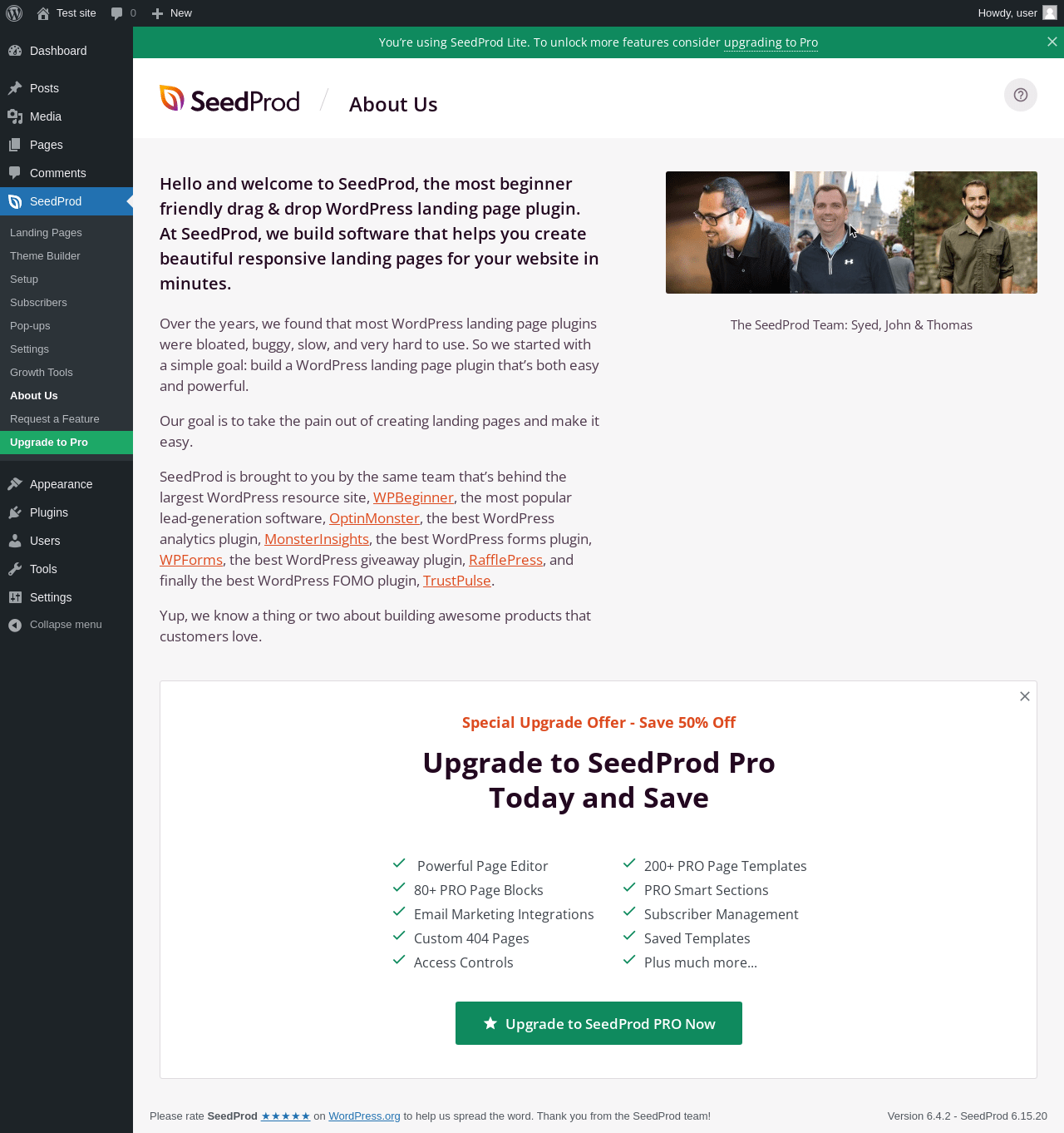 | URL | /wp-admin/admin.php?page=seedprod_lite#/aboutus |
