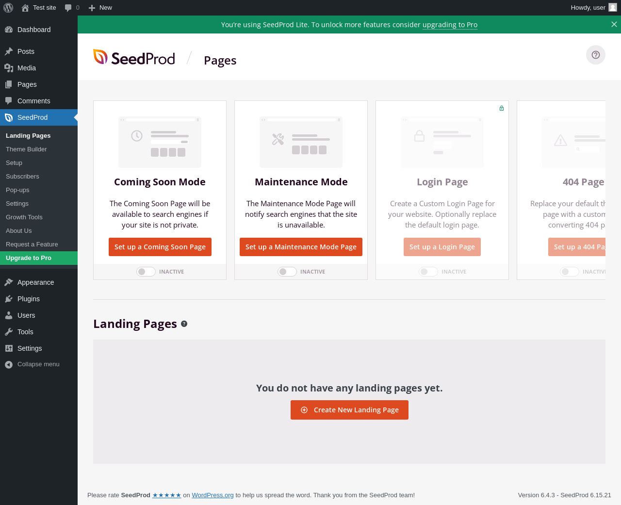 | URL | /wp-admin/admin.php?page=seedprod_lite#/ |