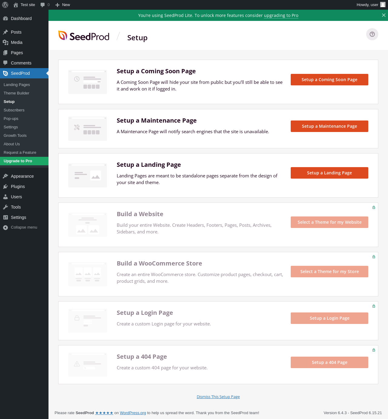 | URL | /wp-admin/admin.php?page=seedprod_lite#/setup |