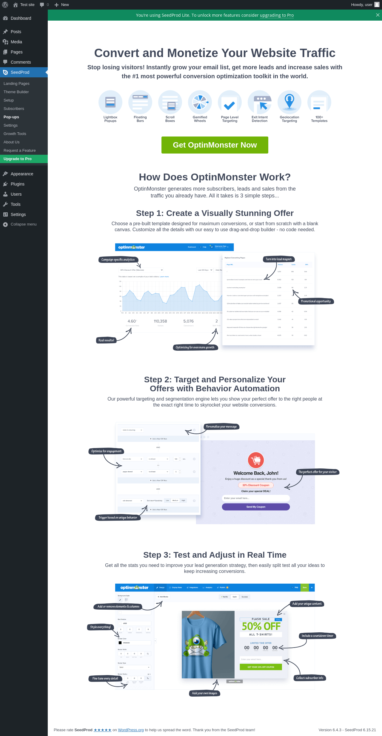 | URL | /wp-admin/admin.php?page=seedprod_lite&sp_om=1#/popups |