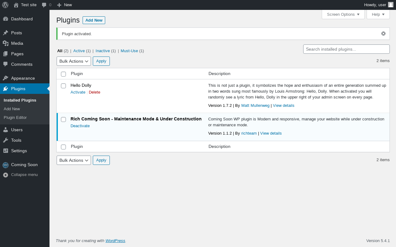 Does "Rich Coming Soon - Maintenance Mode & Under Construction" work with WordPress 5.4.1 and PHP 7.2.16? A smoke test was performed on .