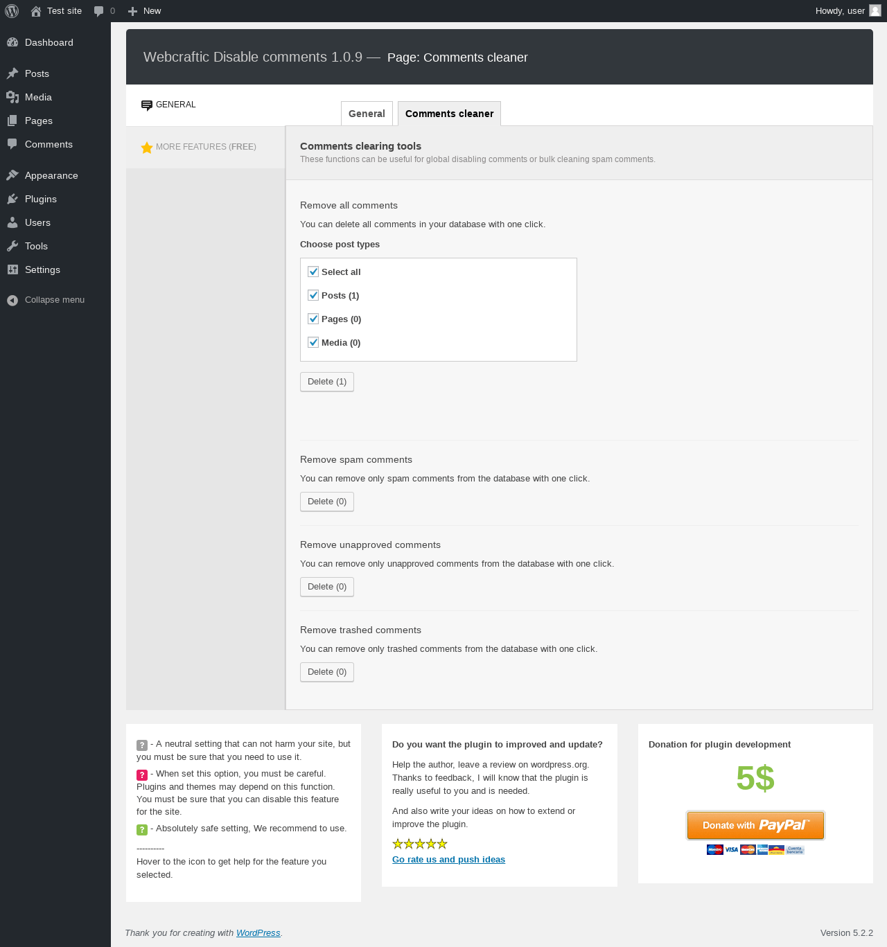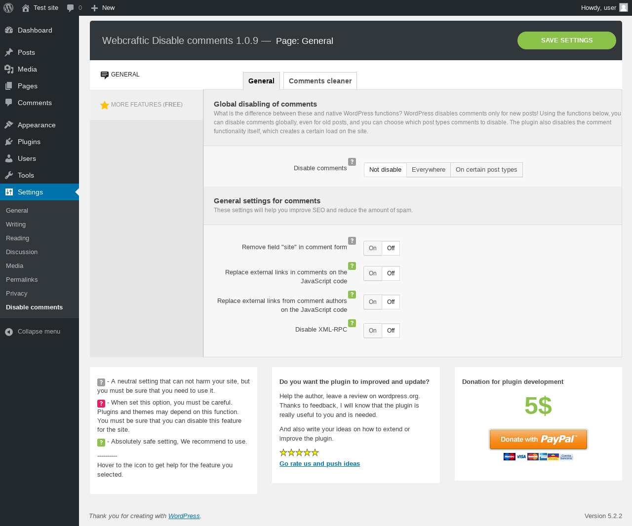 Does Webcraftic Disable Comments work with WordPress 5.2.2 and PHP 7.2.16? A smoke test was performed on .