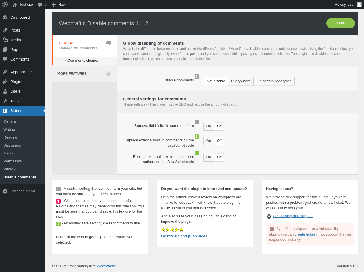 Does Webcraftic Disable Comments work with WordPress 5.8.1 and PHP 7.4.8? A smoke test was performed on .