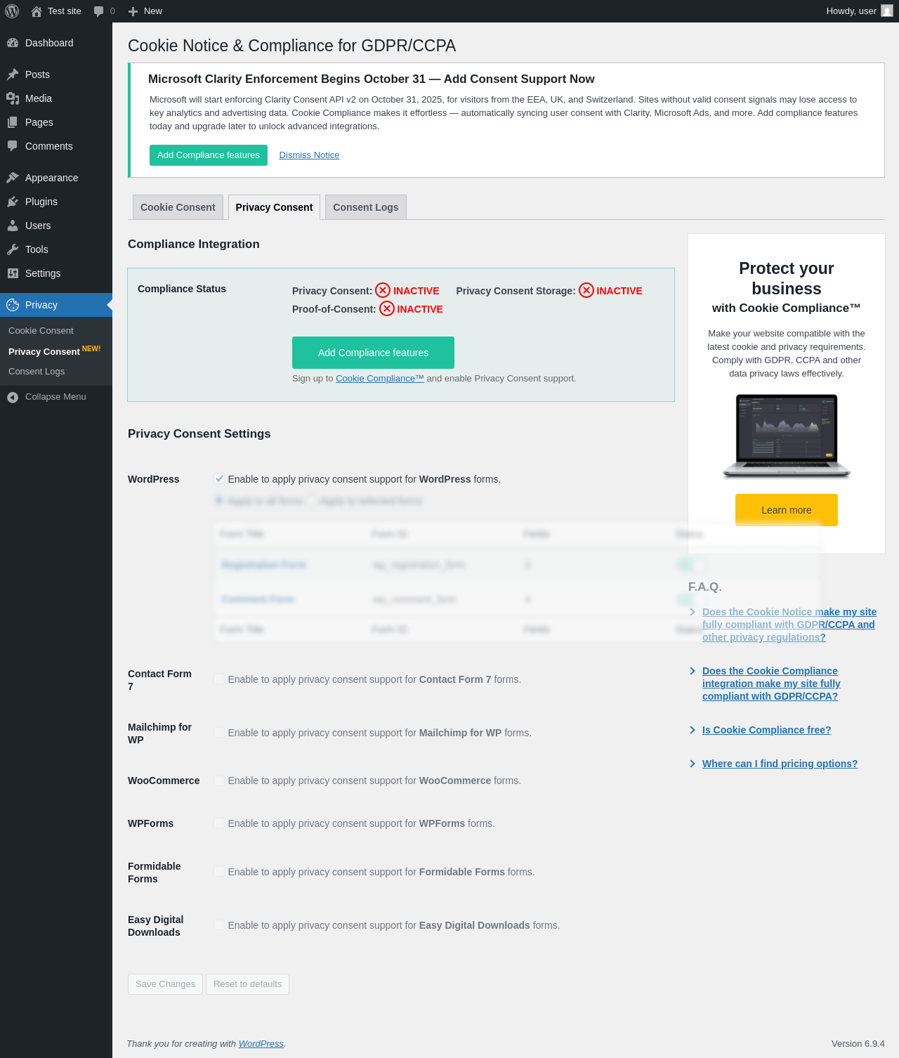 Does "Cookie Notice & Compliance for GDPR / CCPA" work with WordPress 6.9.4 and PHP 8.1.12? A smoke test was performed on .