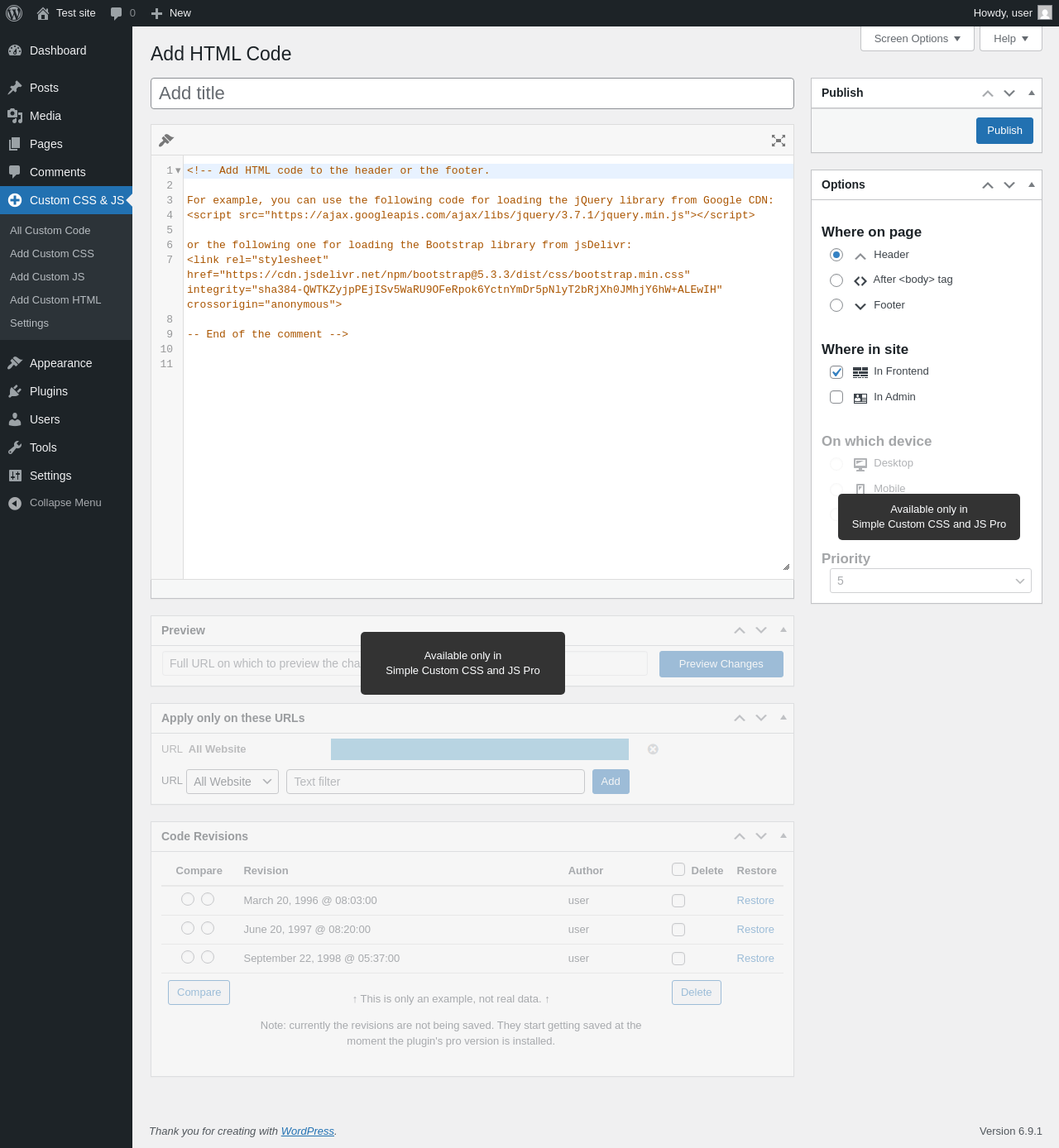 | URL | /wp-admin/post-new.php?post_type=custom-css-js&language=html |
