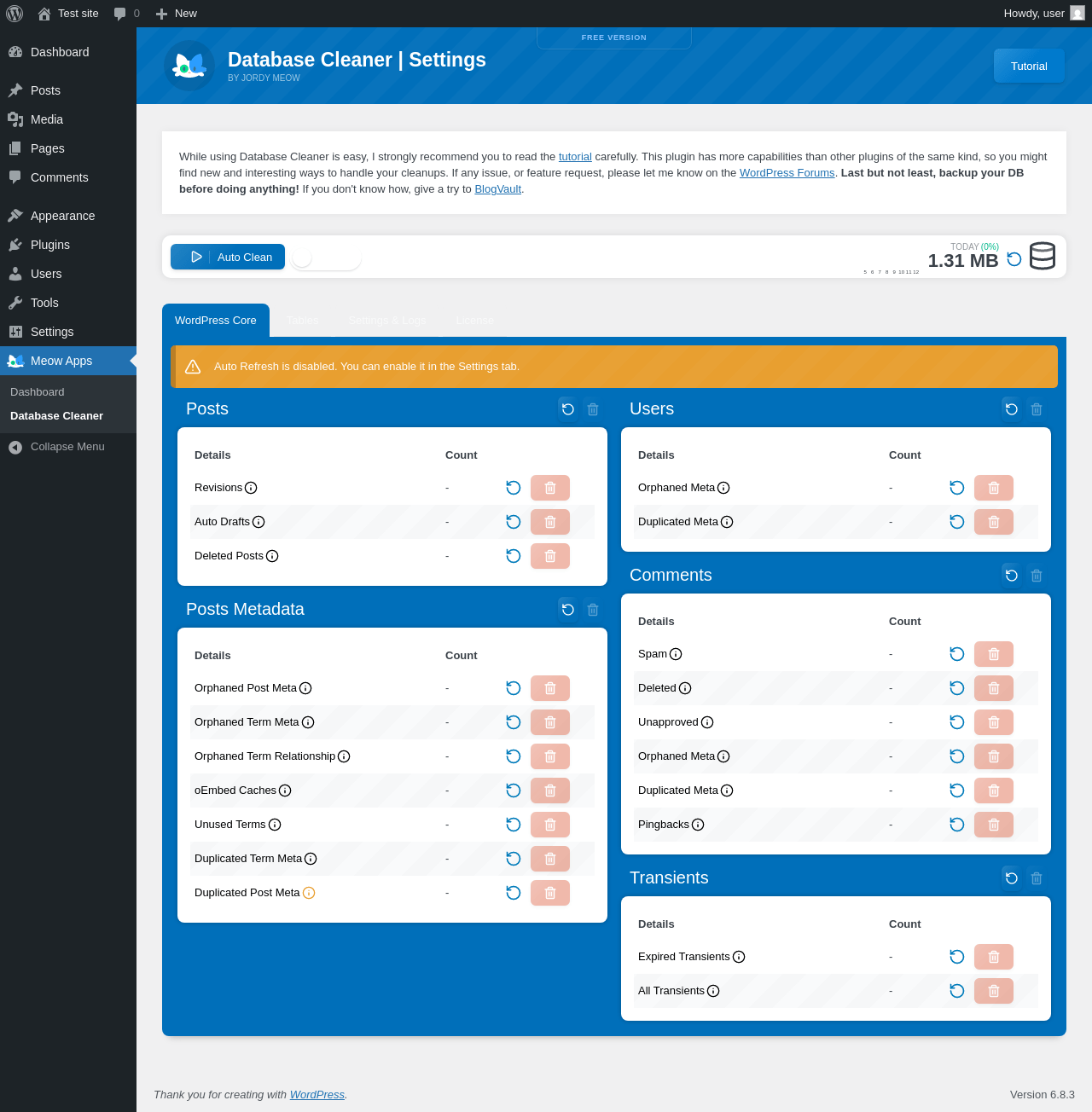 Does Database Cleaner work with WordPress 6.8.3 and PHP 8.1.12? A smoke test was performed on .