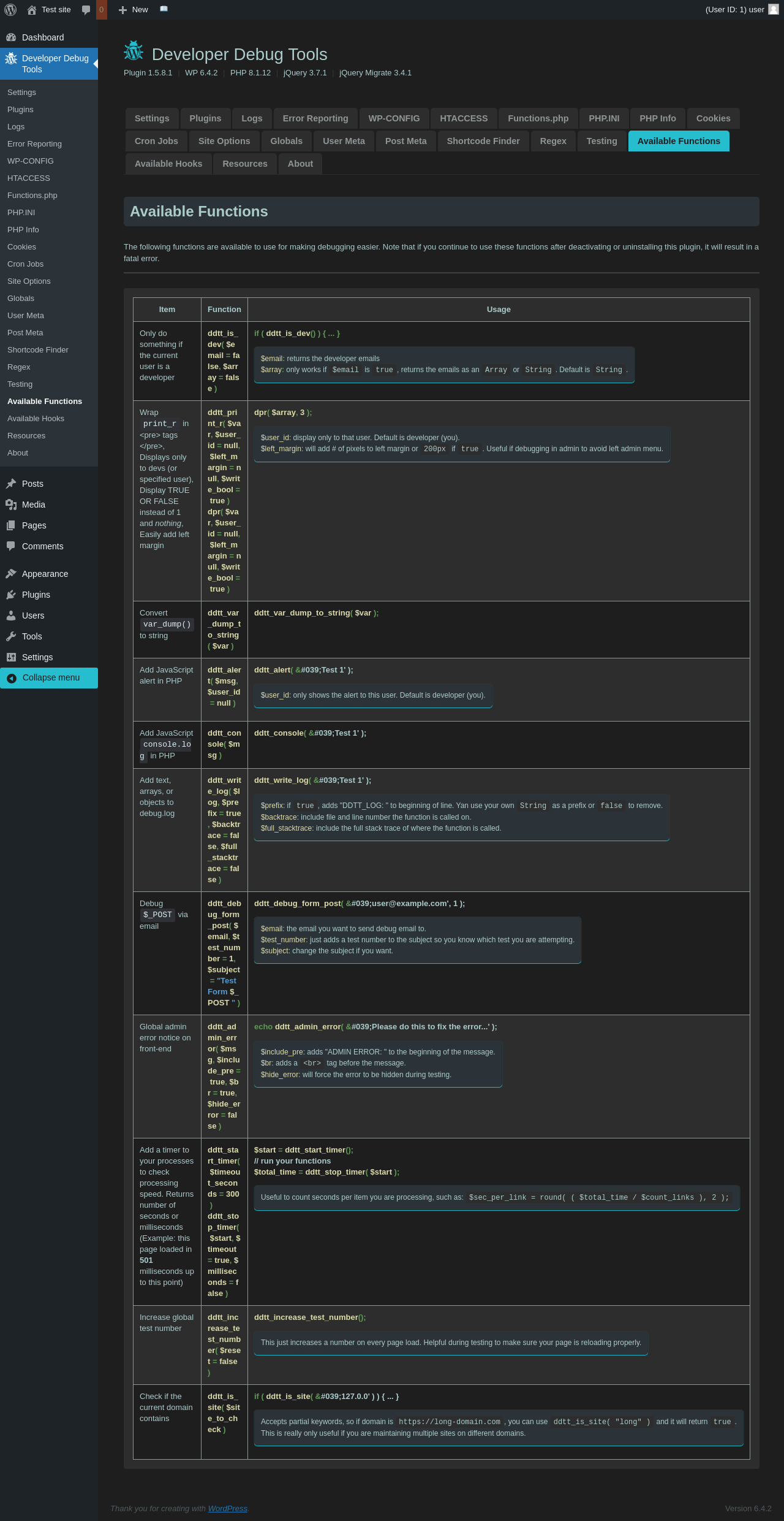 | URL | /wp-admin/admin.php?page=dev-debug-tools&tab=functions |