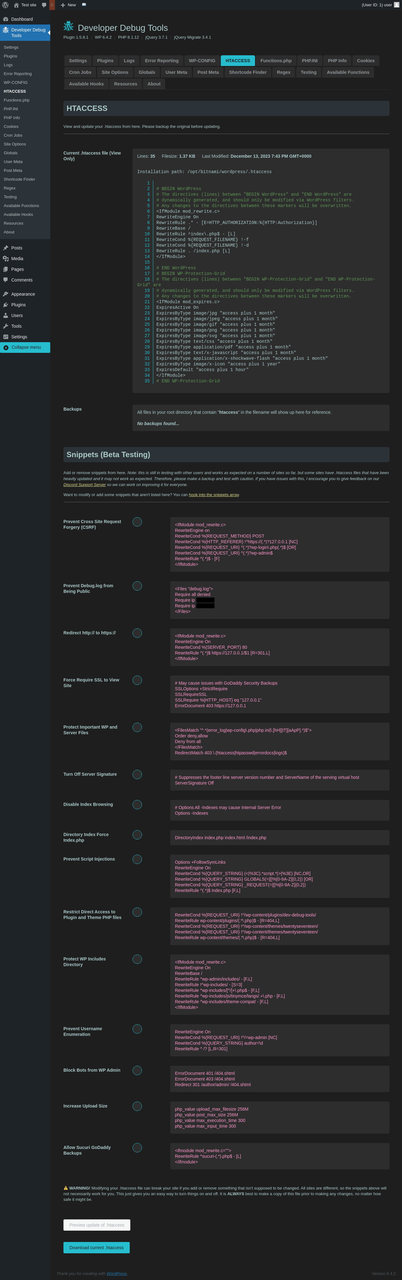 | URL | /wp-admin/admin.php?page=dev-debug-tools&tab=htaccess |