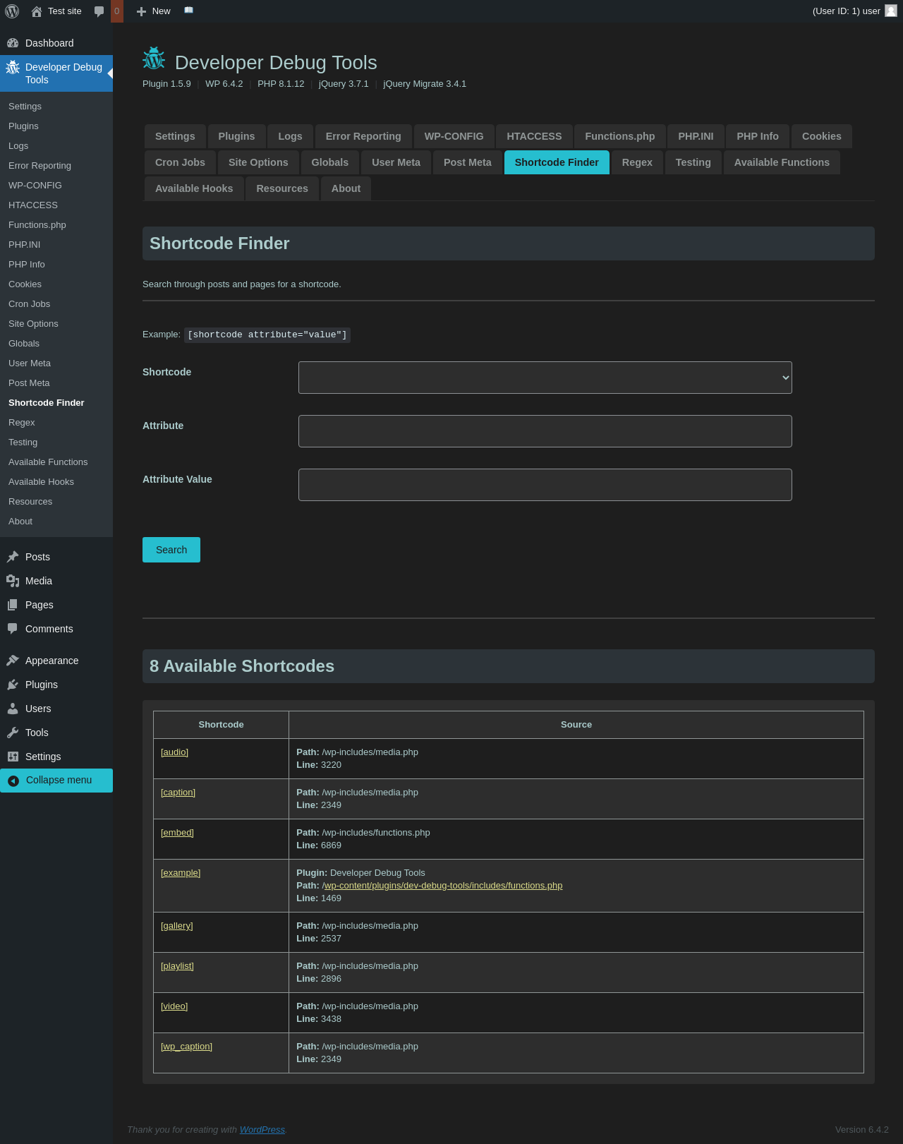 | URL | /wp-admin/admin.php?page=dev-debug-tools&tab=regex |